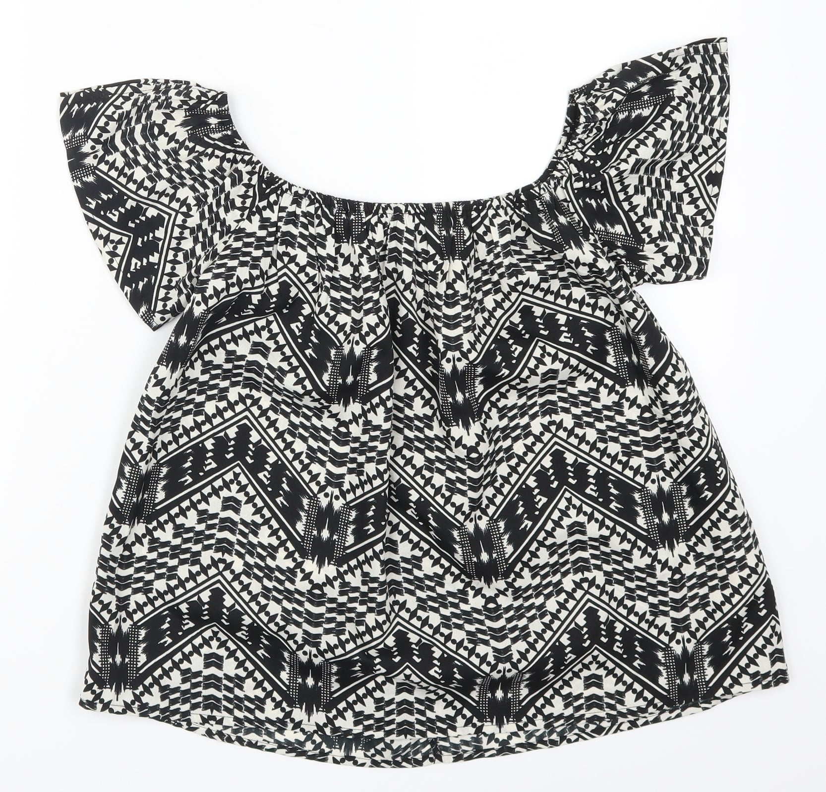 Primark Womens Black Geometric Basic T-Shirt Size 8