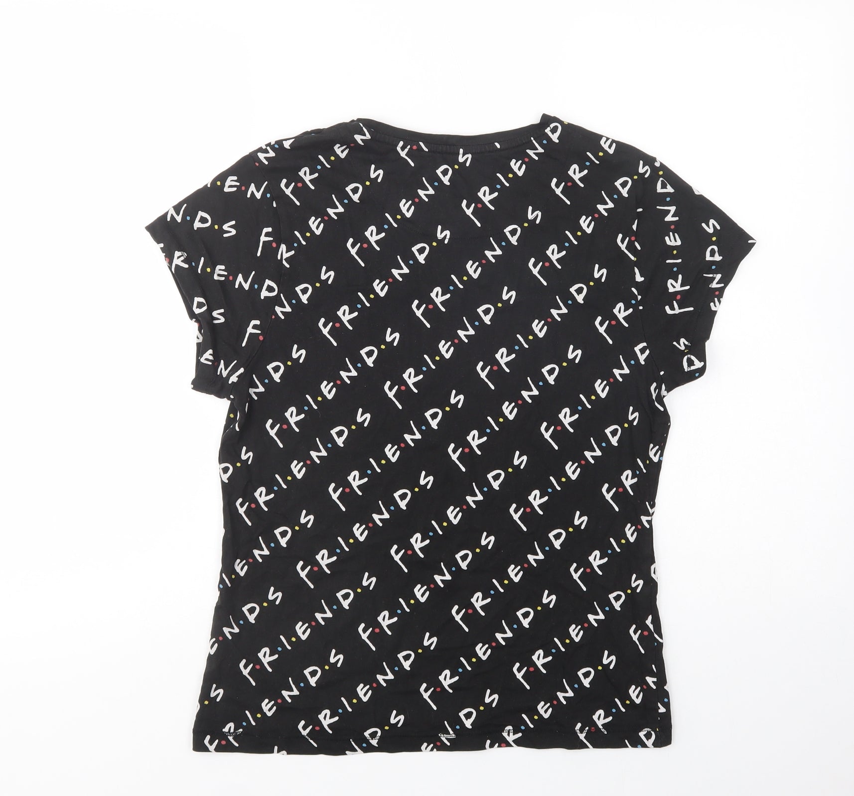 Primark Womens Black Geometric Cotton Basic T-Shirt Size XS Crew Neck - Friends