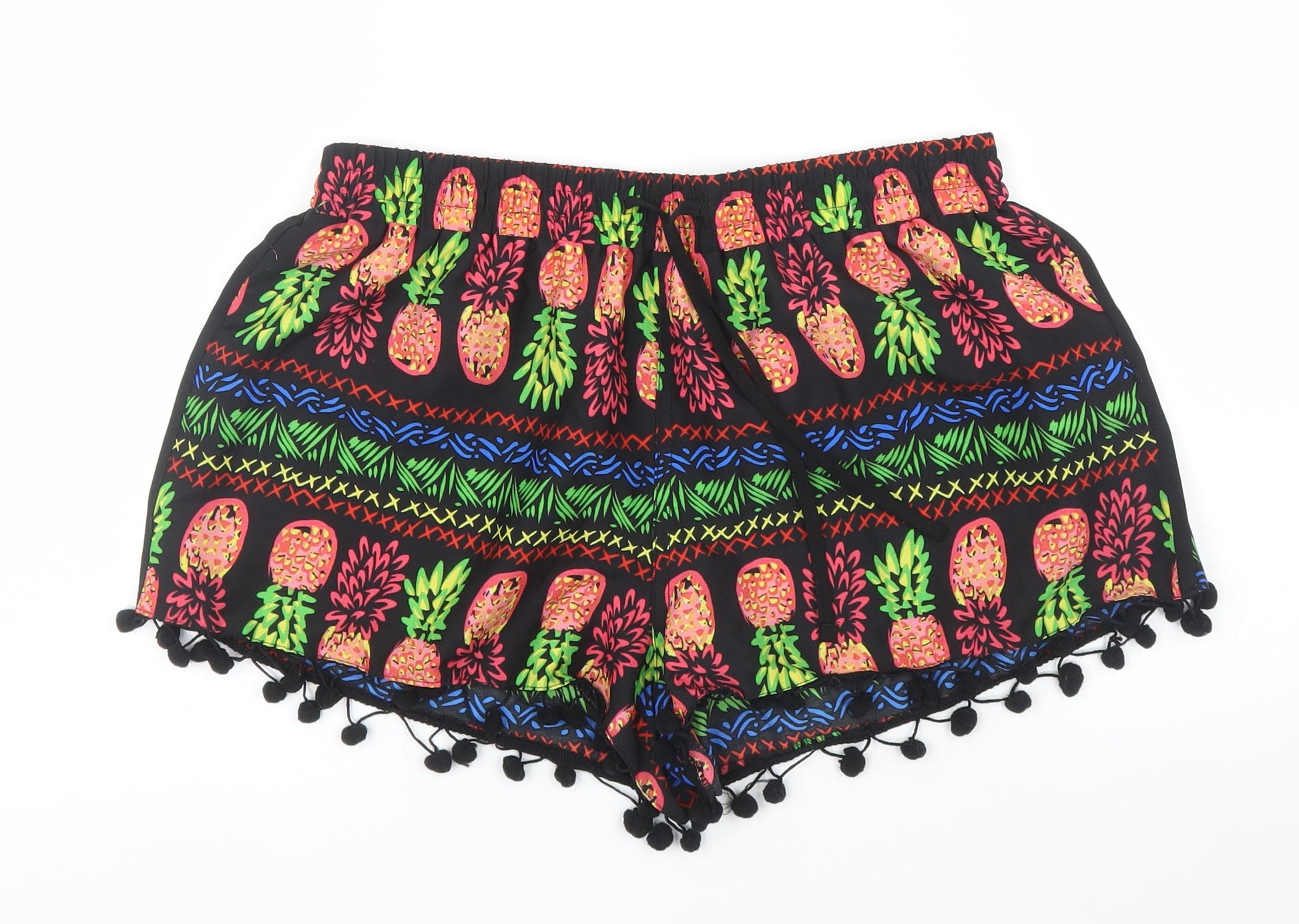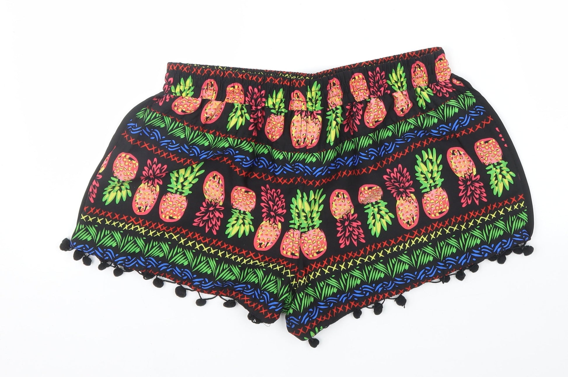 Primark Womens Black Geometric Cut-Off Shorts Size 6