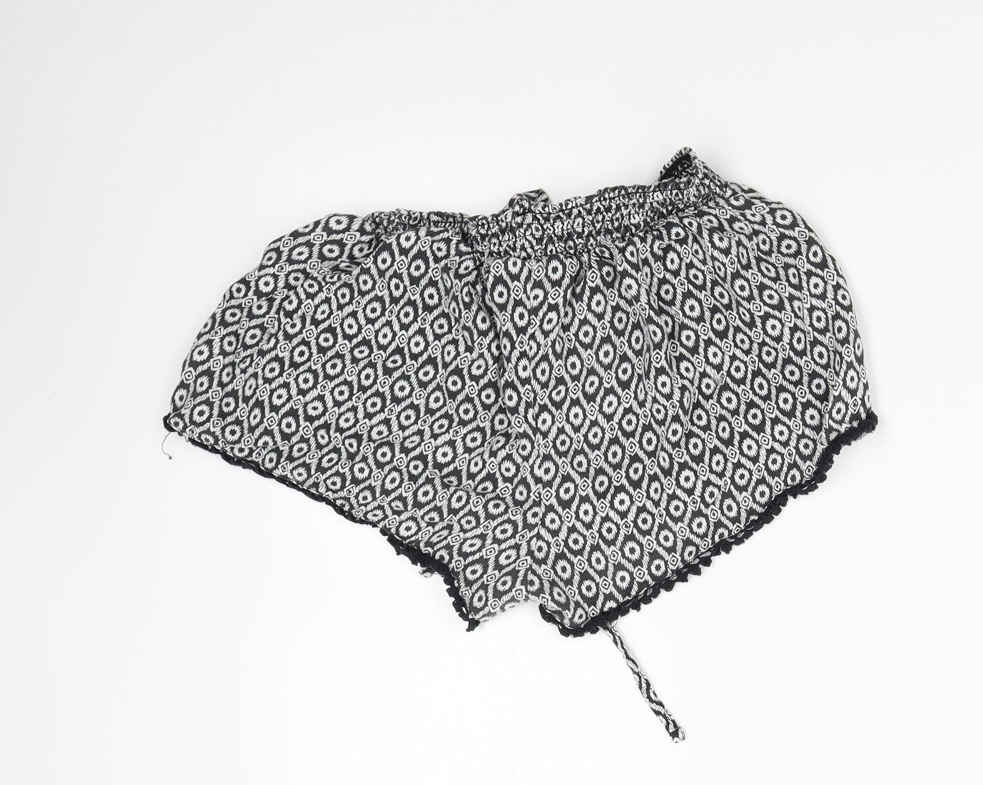 Primark Womens Black Geometric Hot Pants Shorts Size 8