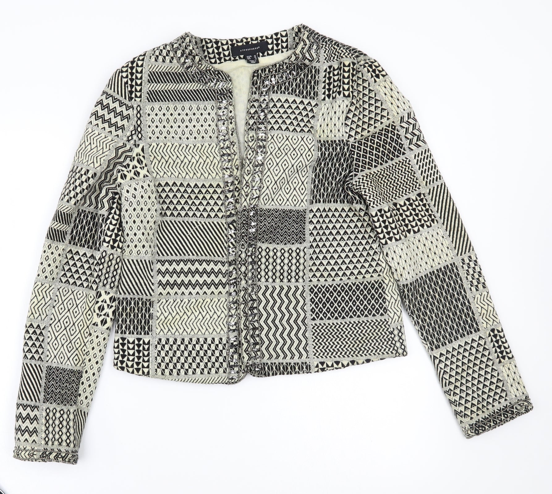 Primark Womens Black Geometric Jacket Coatigan Size 10