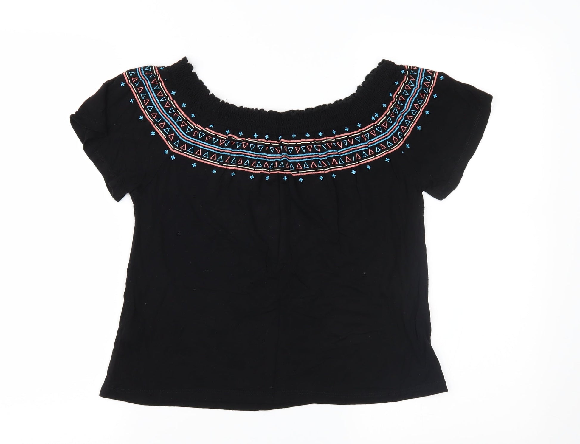 Primark Womens Black Geometric Jersey Basic Blouse Size 8