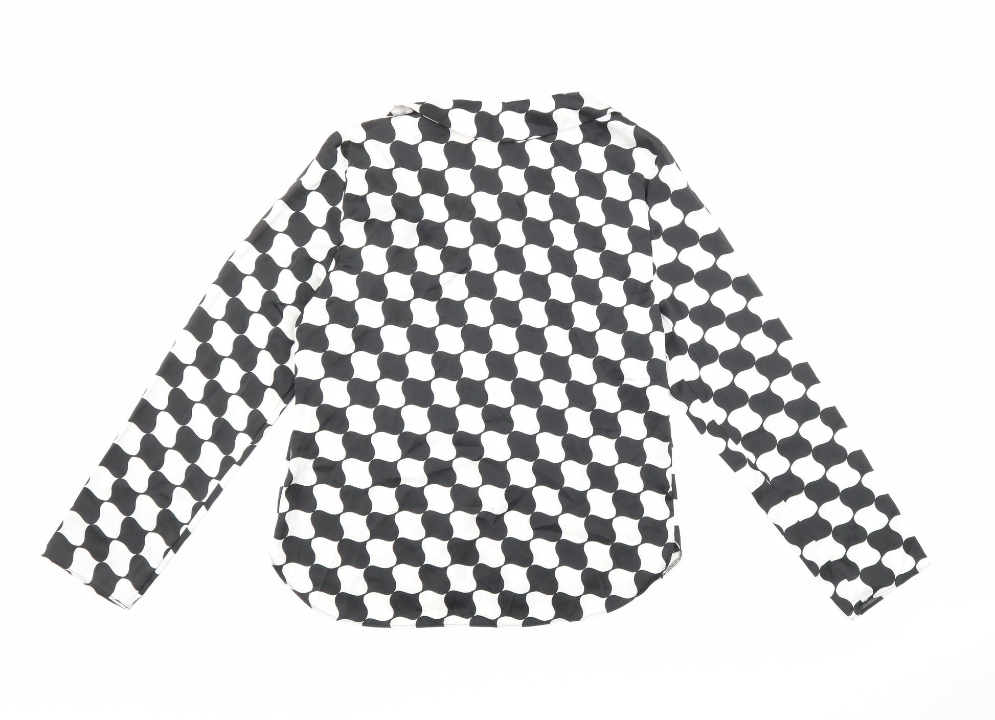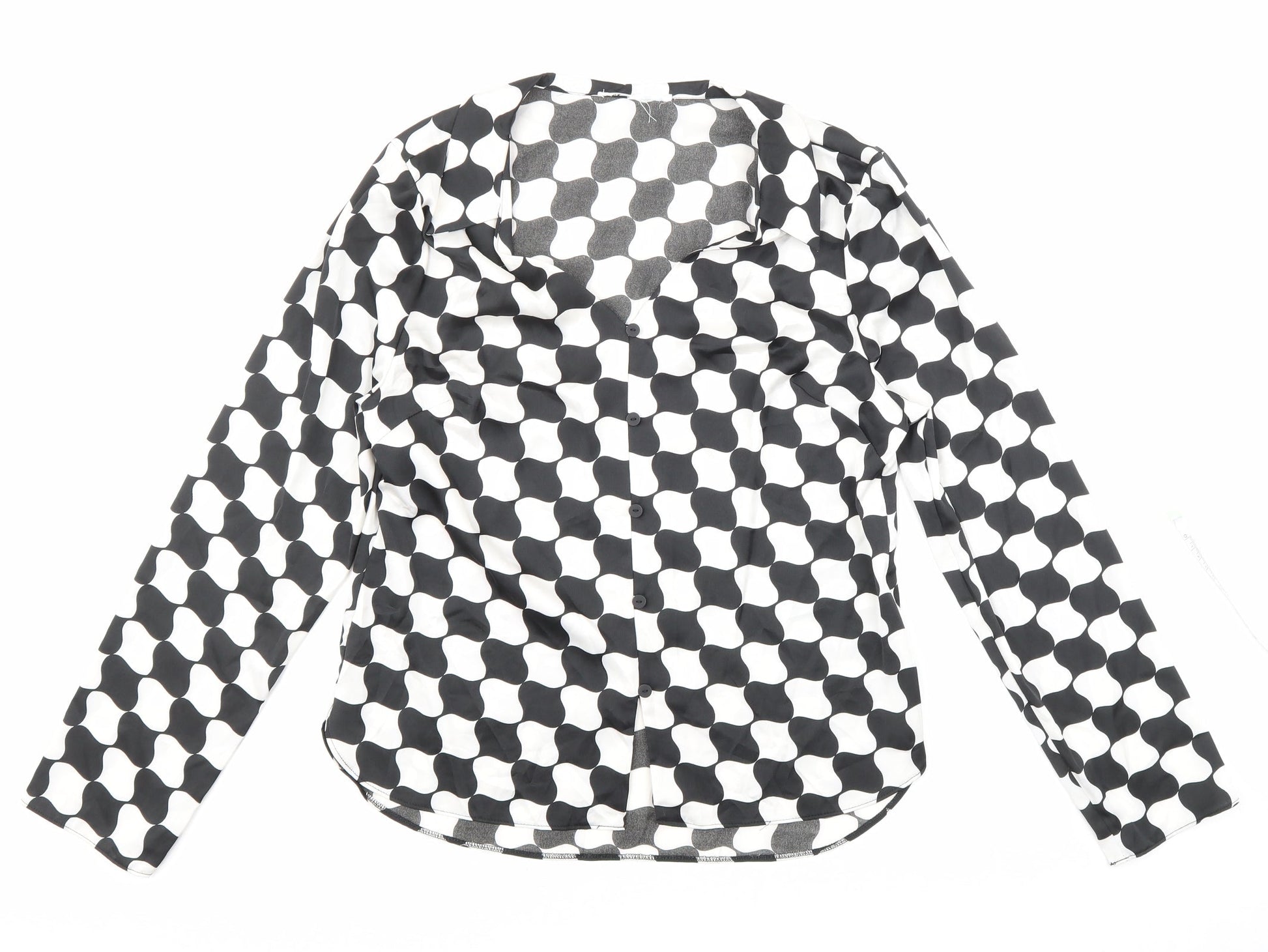 Primark Womens Black Geometric Polyester Basic Blouse Size 12 Collared - Black and white pattern