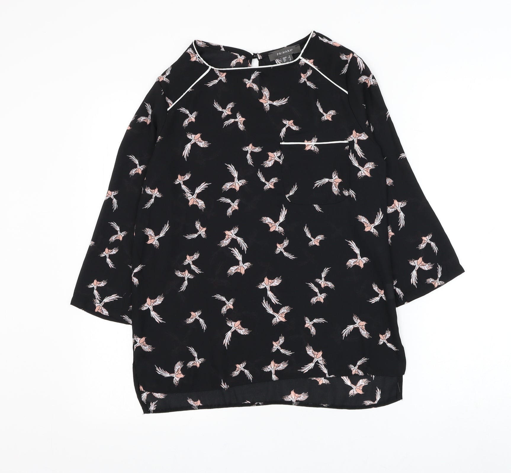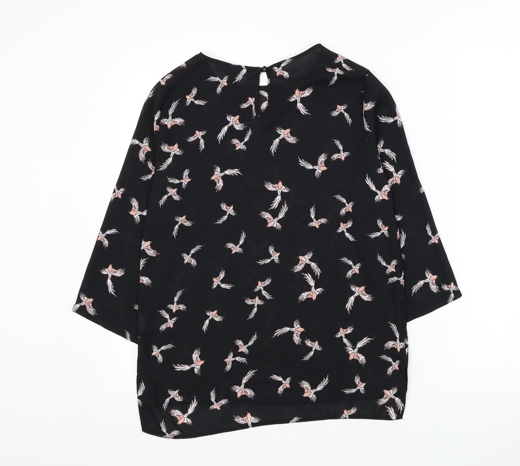 Primark Womens Black Geometric Polyester Basic Blouse Size 6 Round Neck - Bird