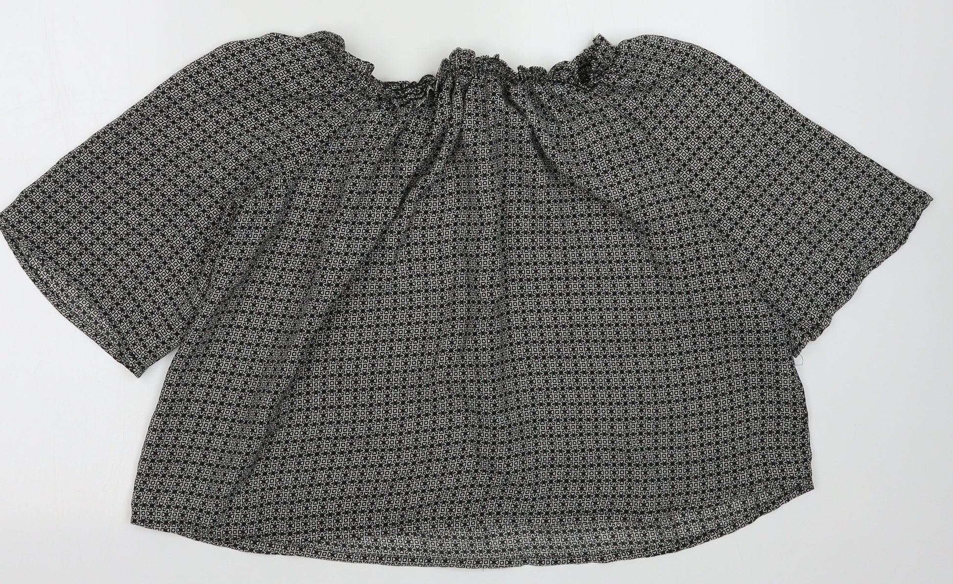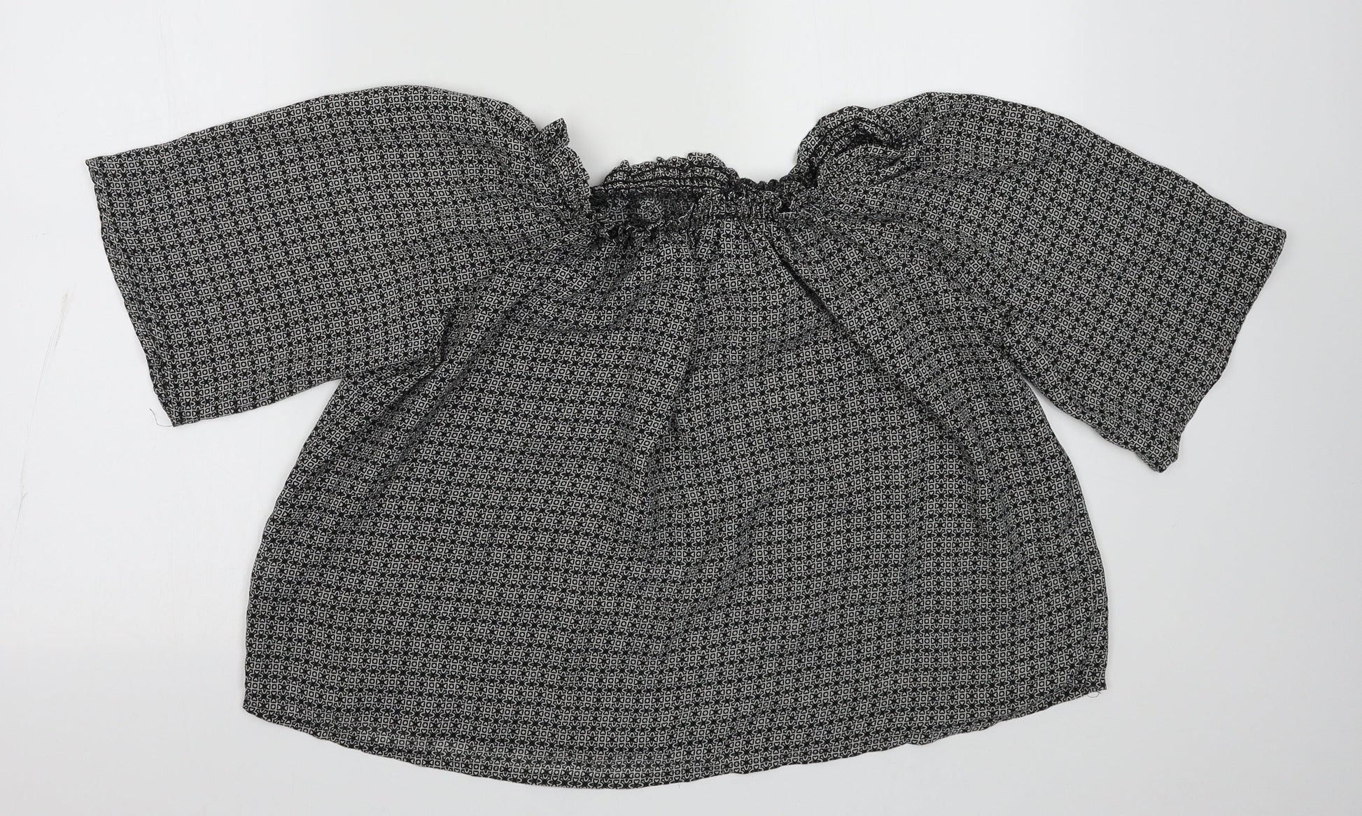 Primark Womens Black Geometric Polyester Basic Blouse Size 8 Off the Shoulder