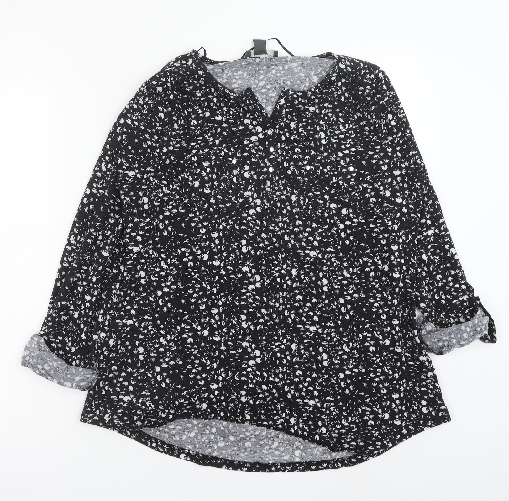 Primark Womens Black Geometric Polyester Basic Blouse Size M V-Neck