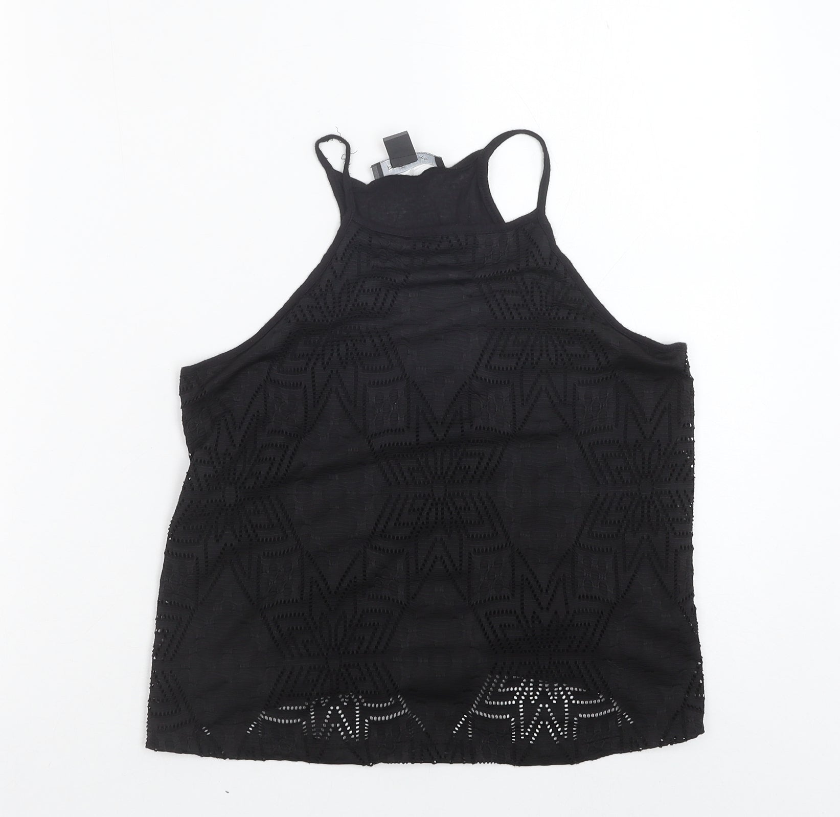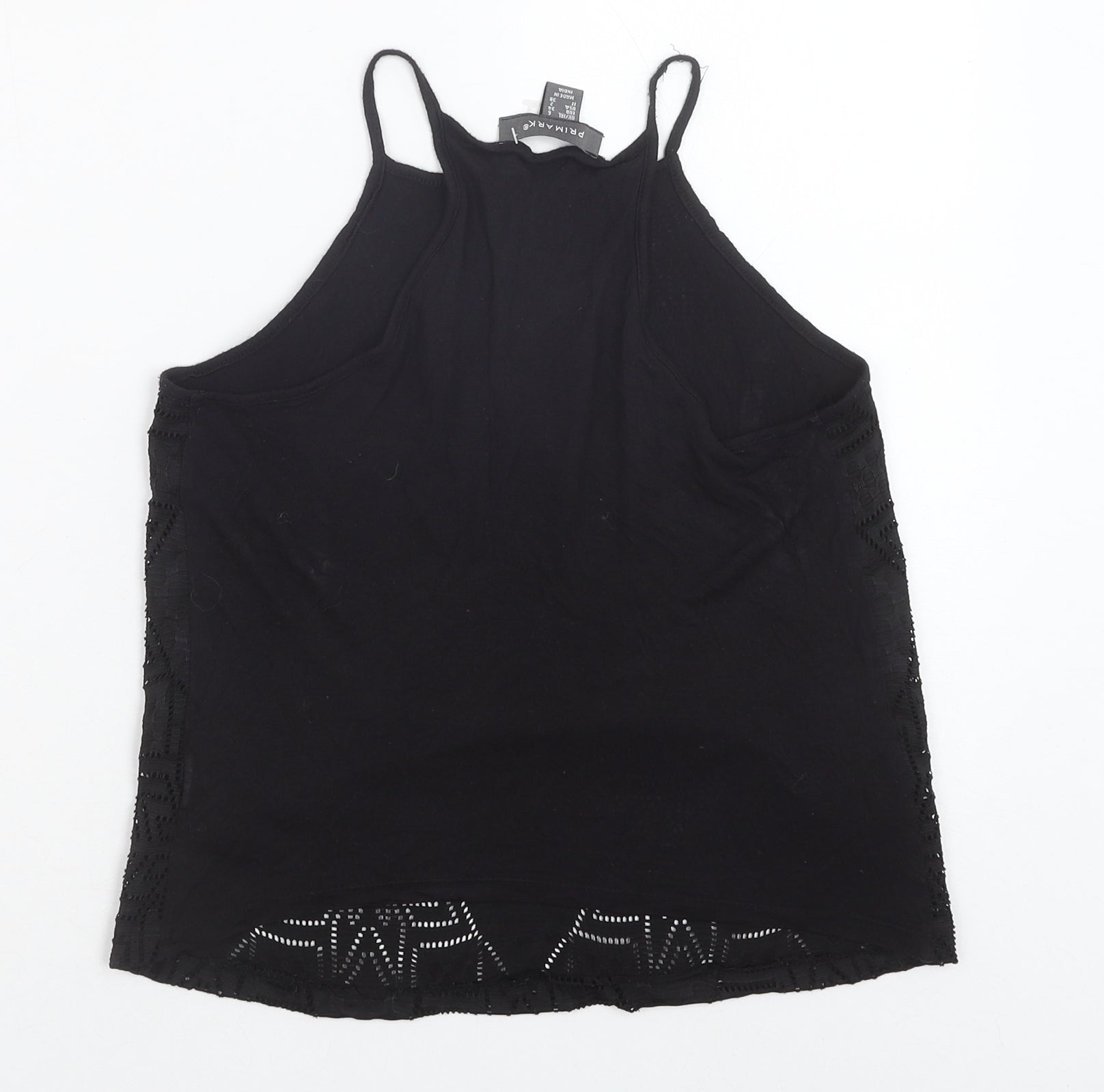 Primark Womens Black Geometric Polyester Basic Tank Size 6 Round Neck