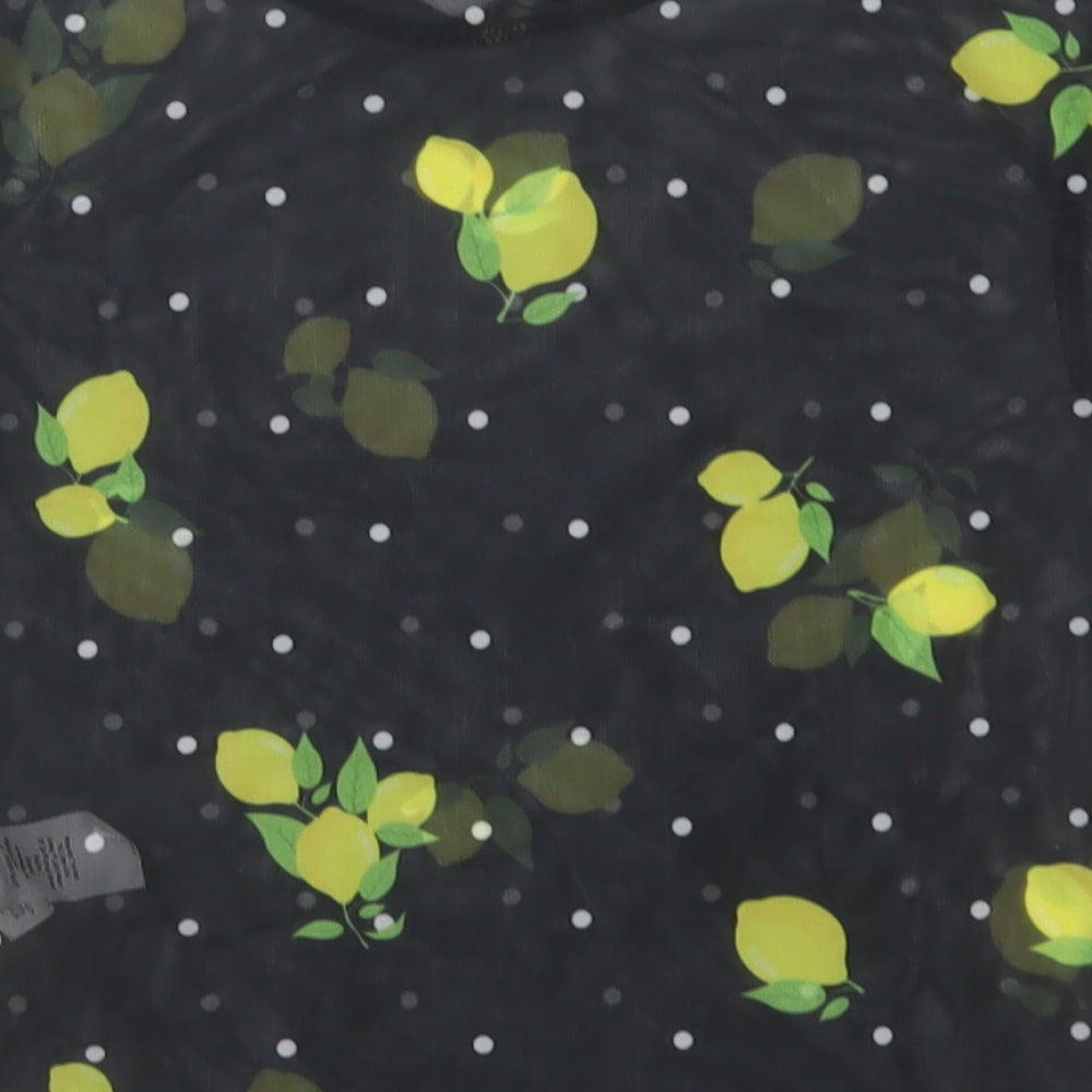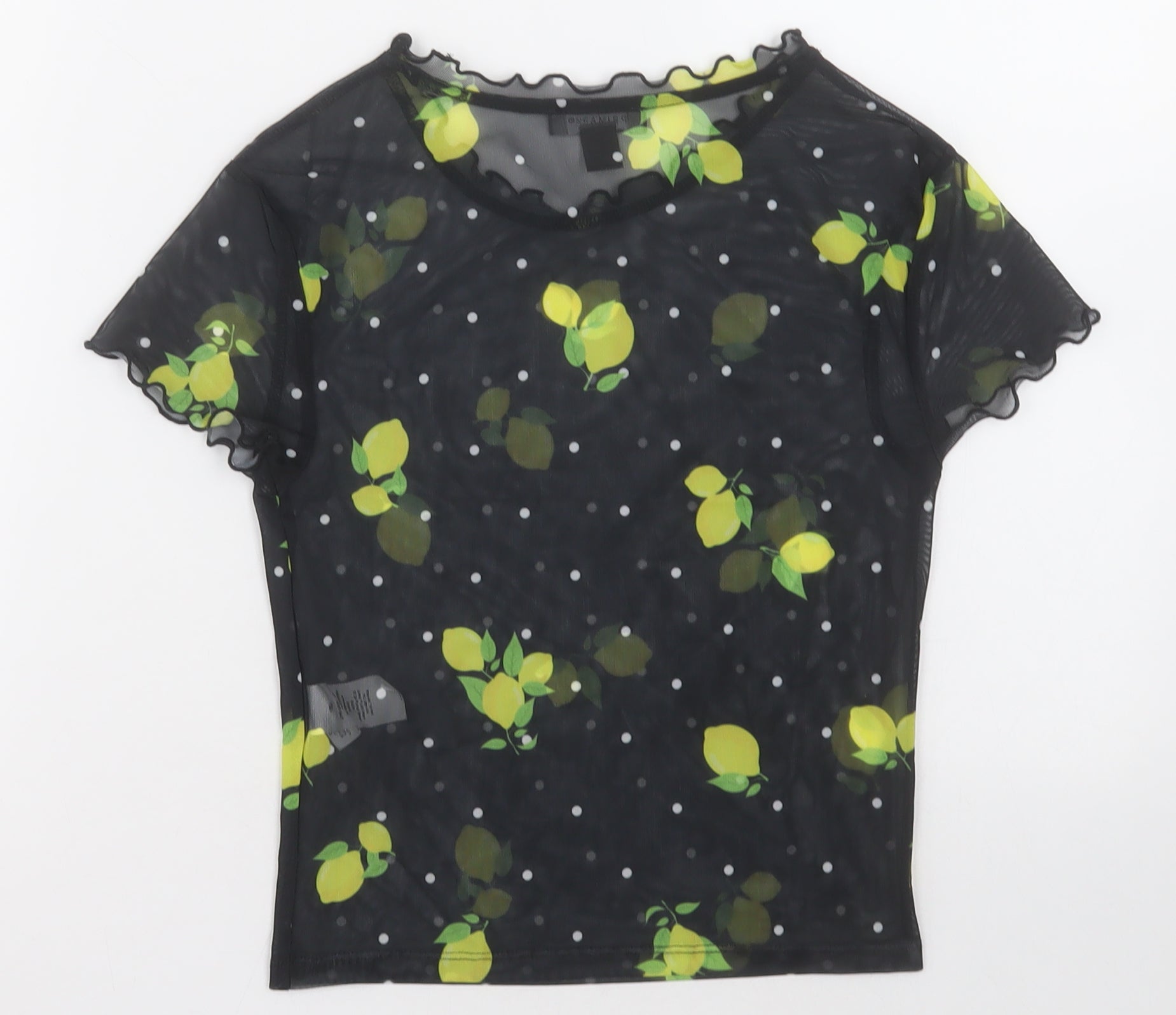 Primark Womens Black Geometric Polyester Cropped T-Shirt Size 4 Crew Neck - Lemon print