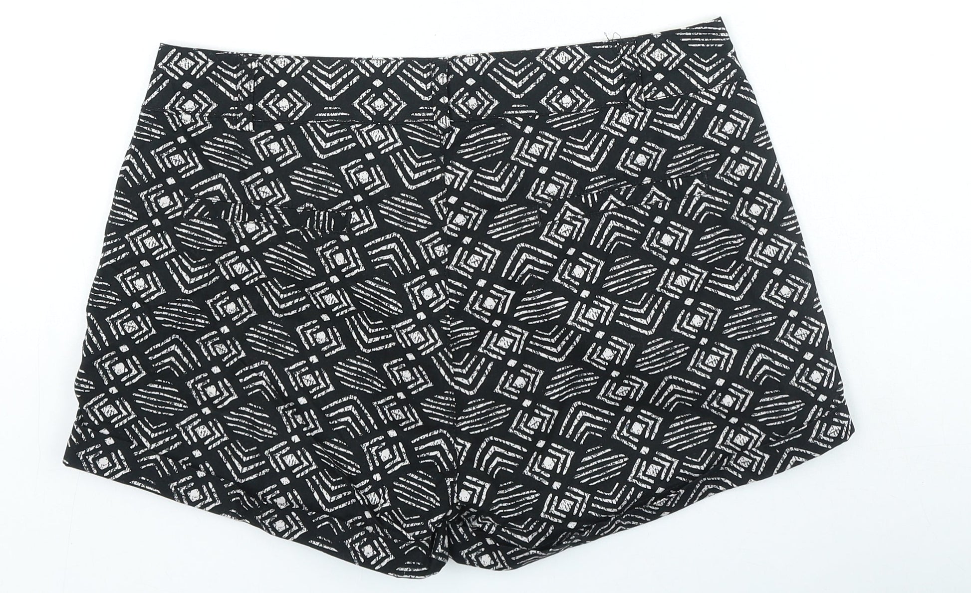 Primark Womens Black Geometric Polyester Hot Pants Shorts Size 10 L4 in Regular Zip