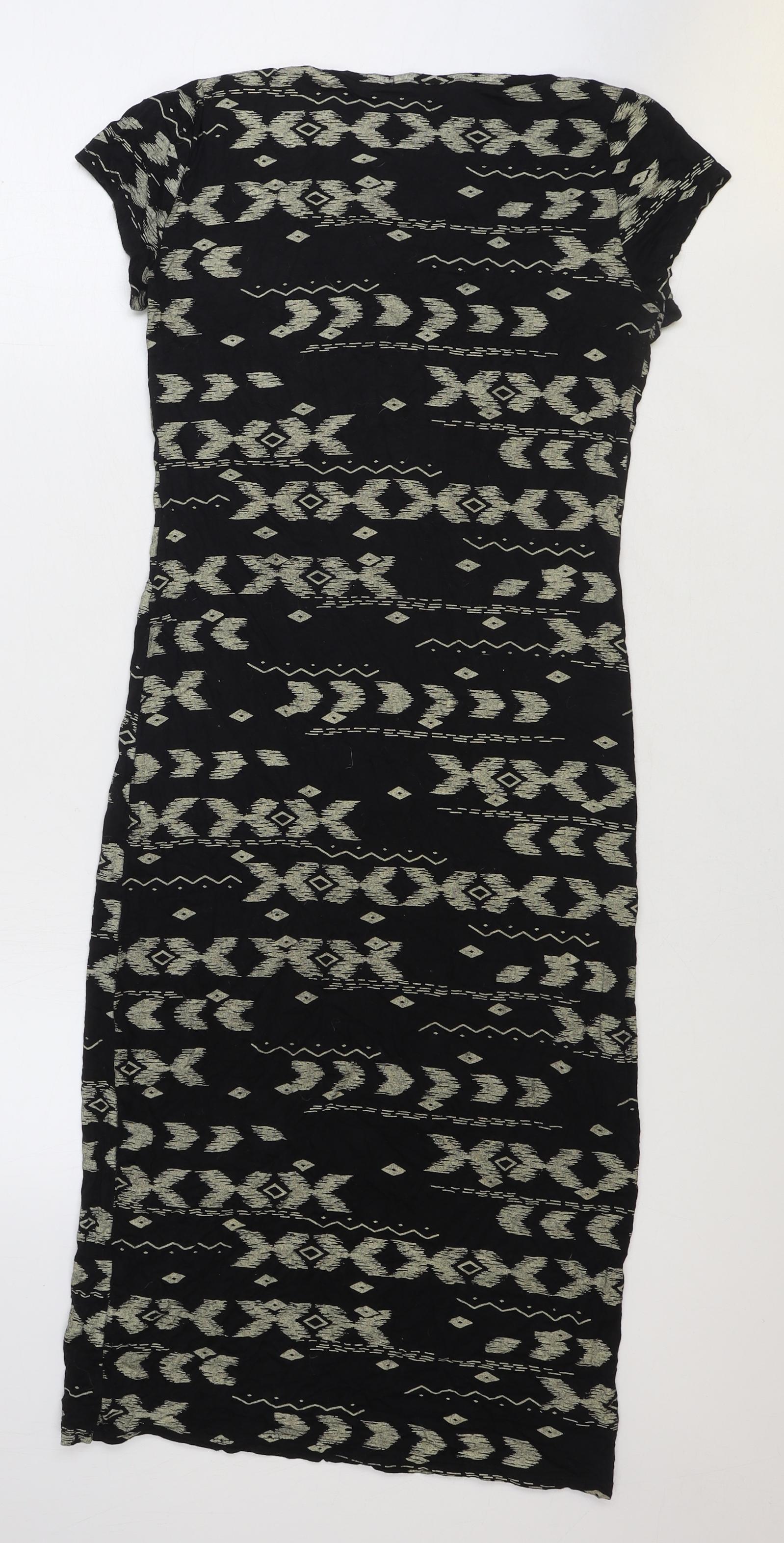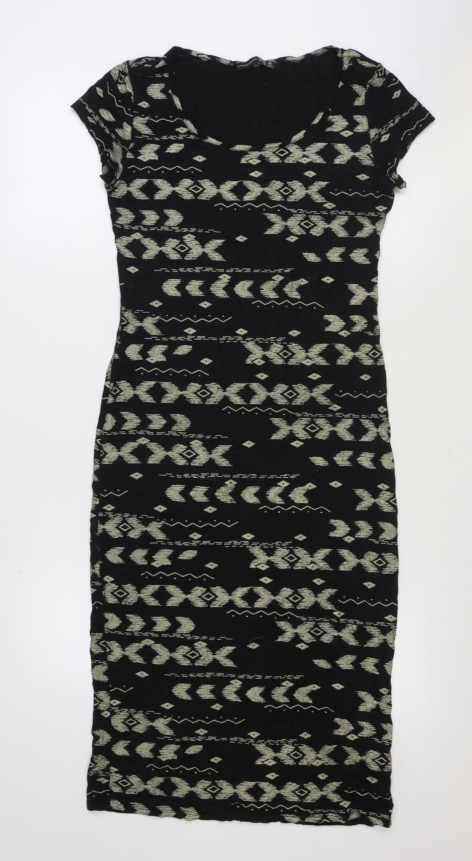 Primark Womens Black Geometric Polyester Pencil Dress Size 10 Boat Neck Pullover