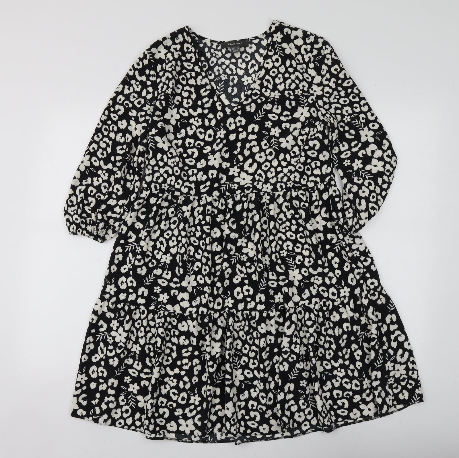 Primark Womens Black Geometric Polyester Skater Dress Size 4 V-Neck