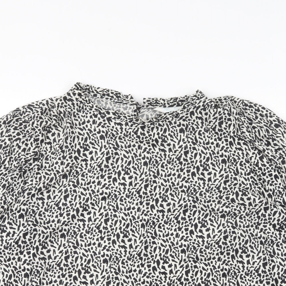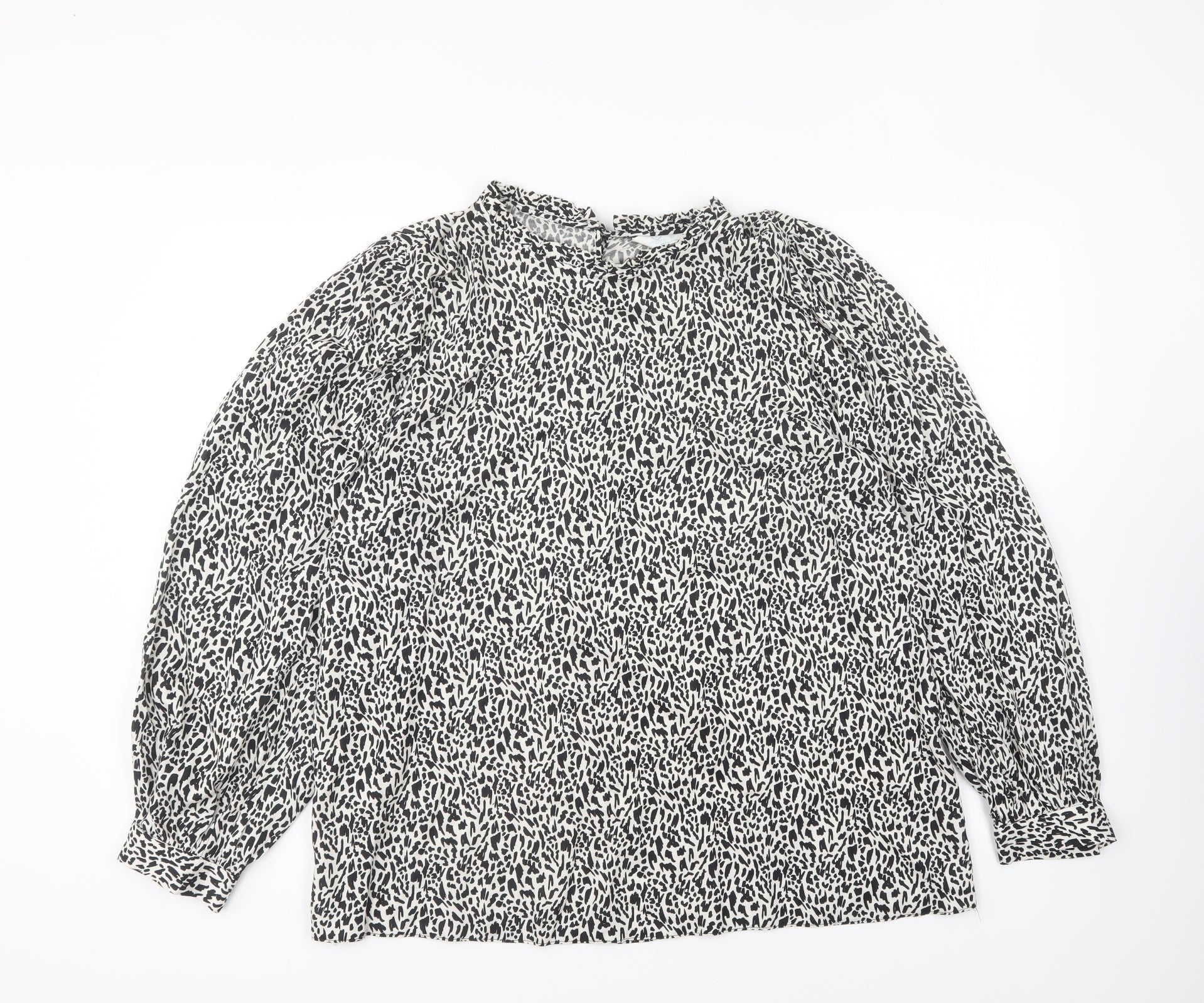 Primark Womens Black Geometric Viscose Basic Blouse Size 18 High Neck