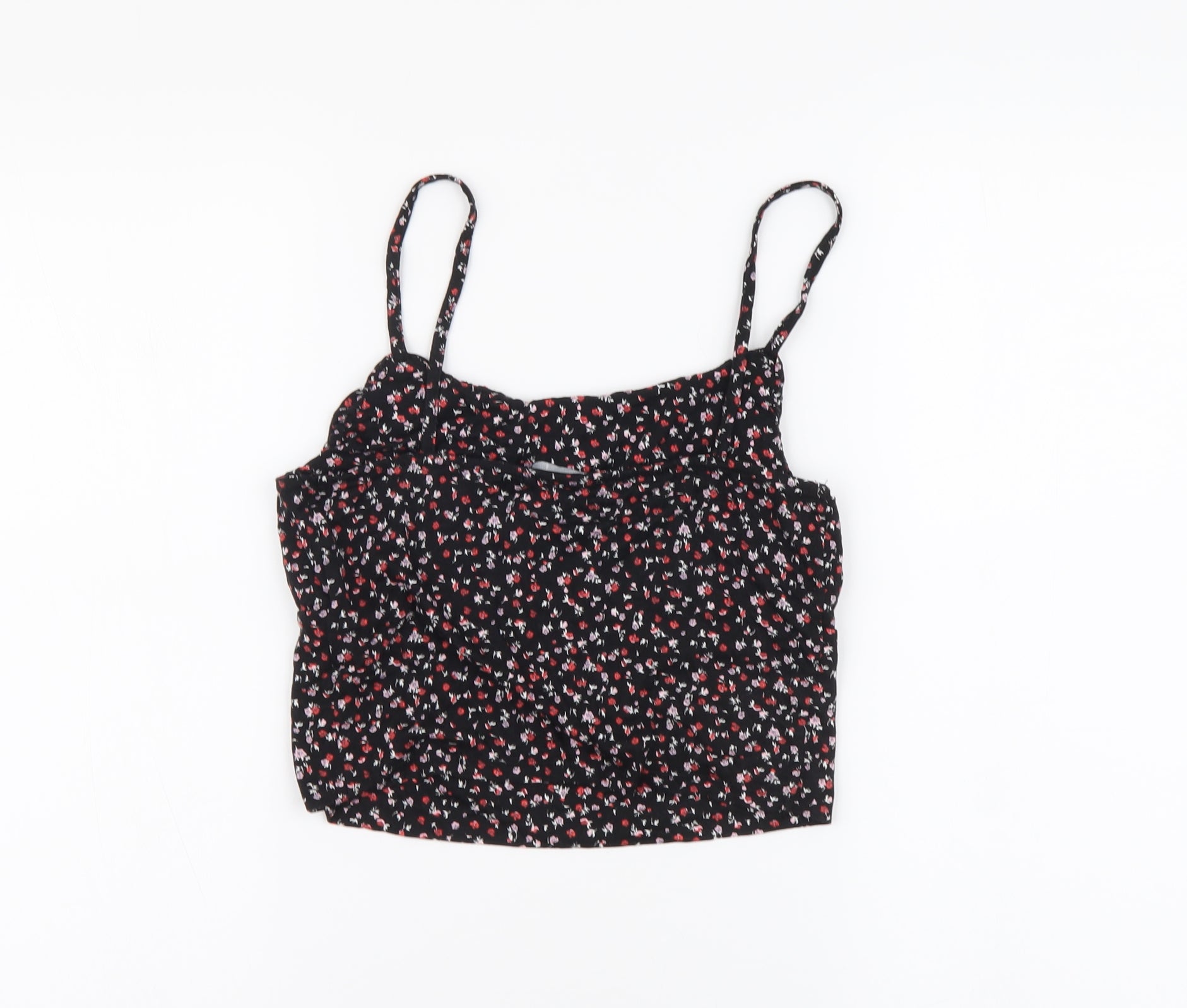 Primark Womens Black Geometric Viscose Cropped Tank Size S Square Neck