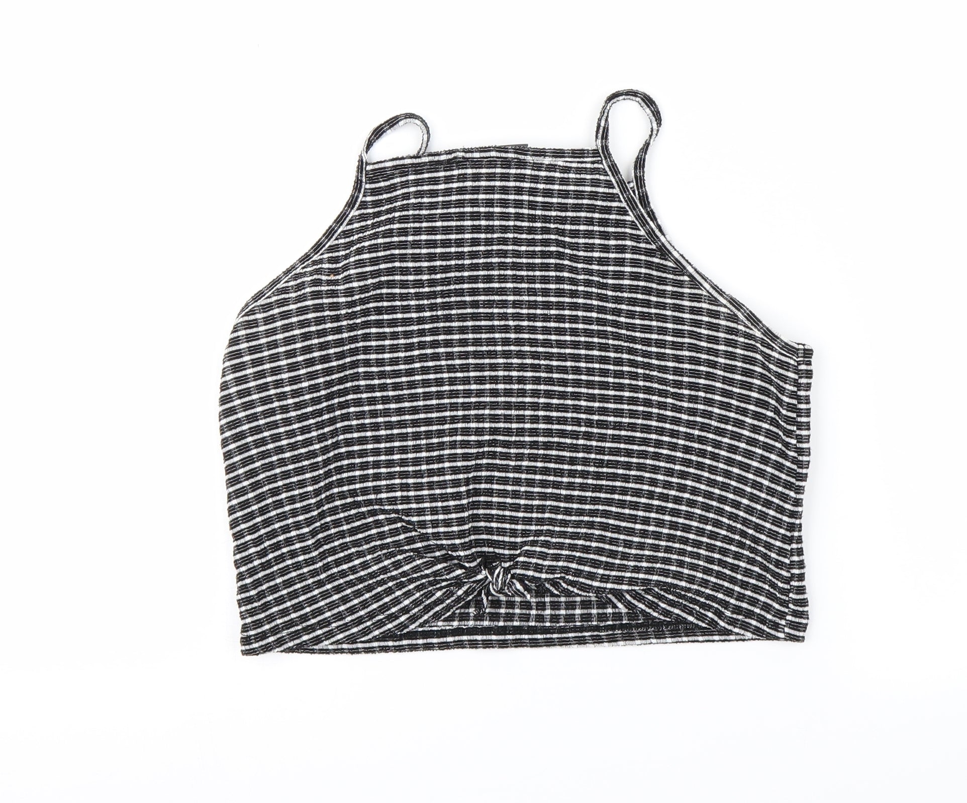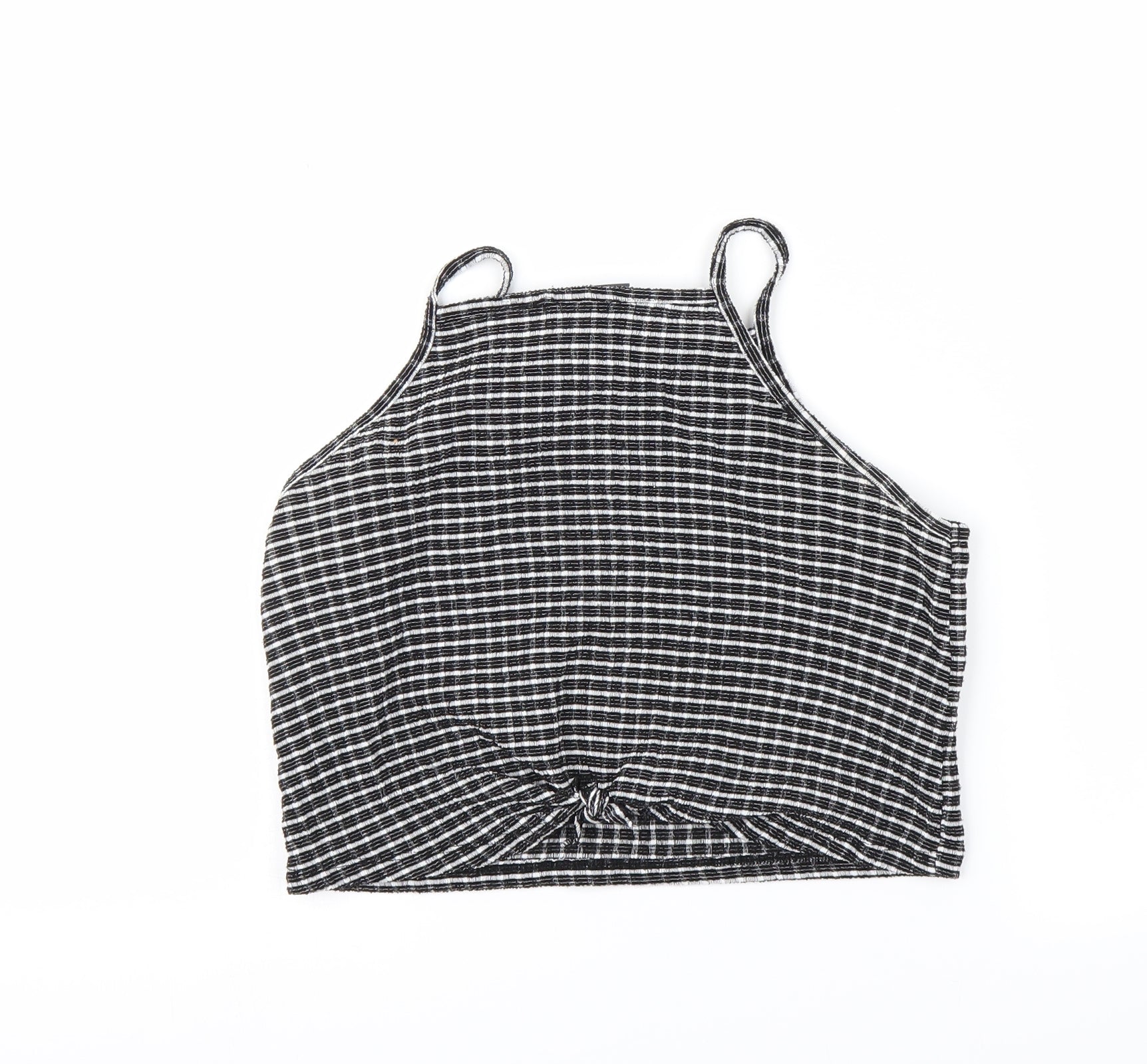 Primark Womens Black Houndstooth Cropped Polo Size 10