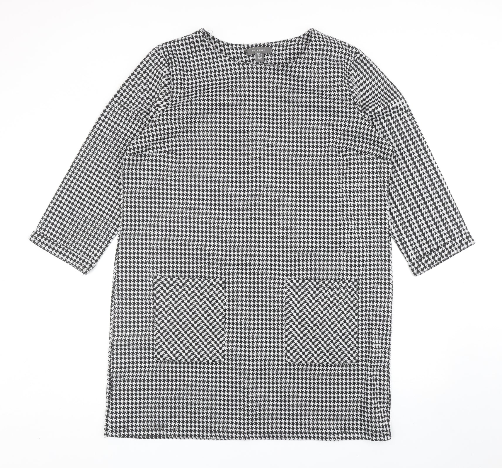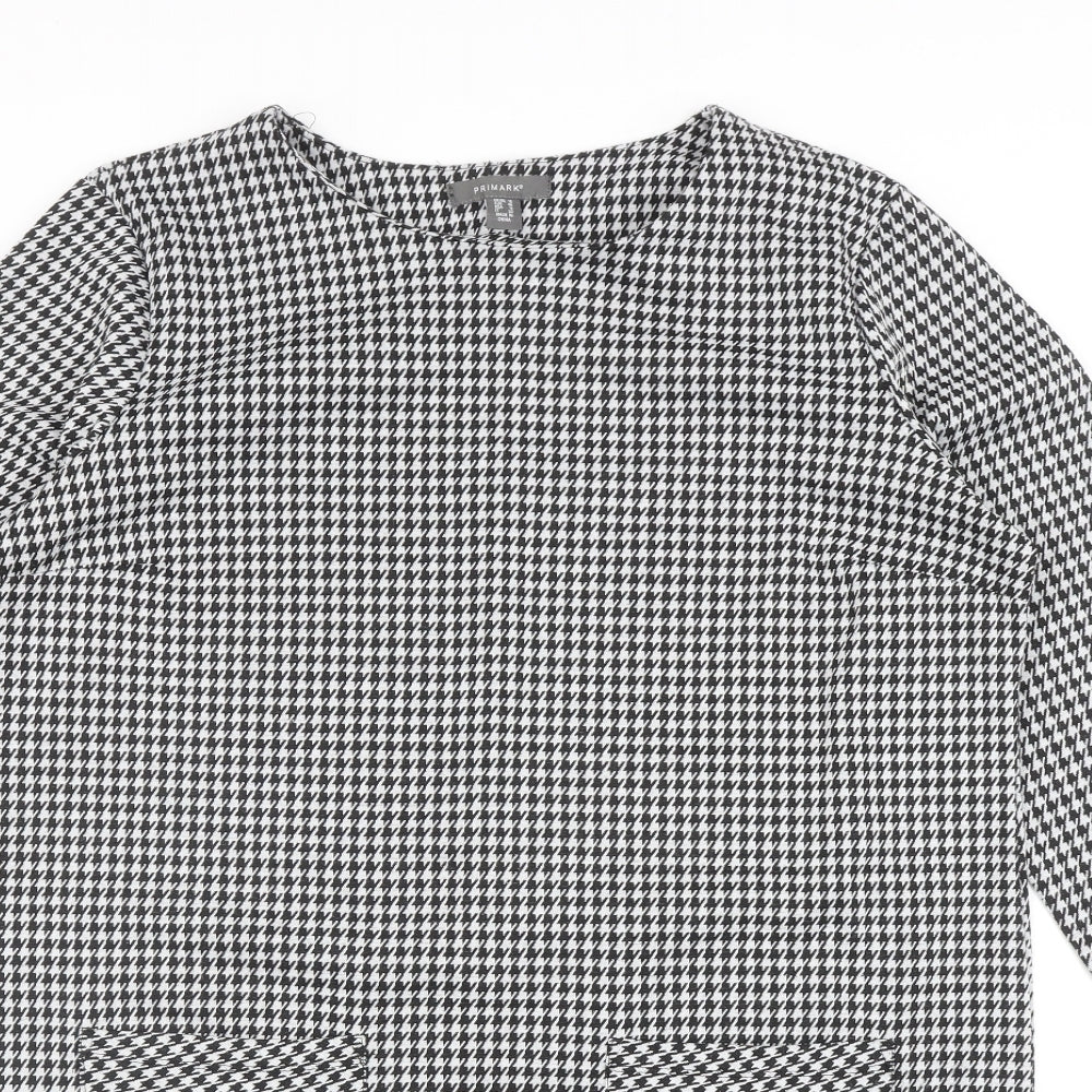 Primark Womens Black Houndstooth Polyester Sheath Size 18 Round Neck Pullover
