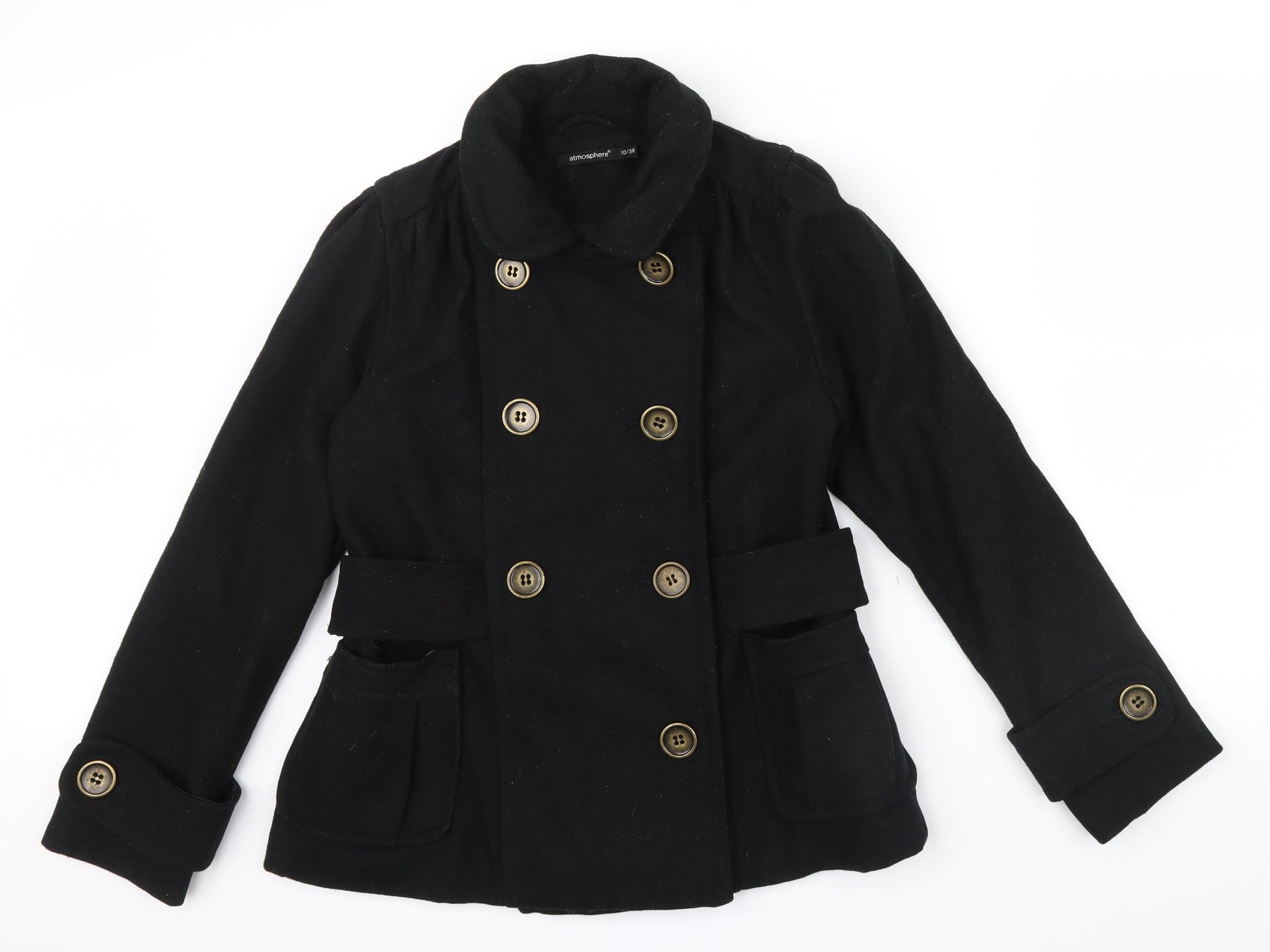 Primark Womens Black Jacket Coat Size 10 - belt large button detail