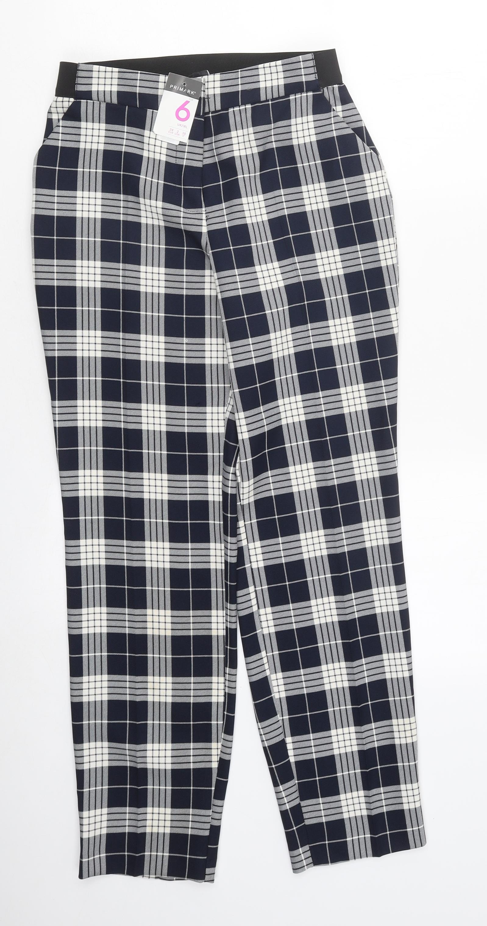 Primark Womens Black Plaid Polyester Trousers Size 6 L35 in Regular Zip