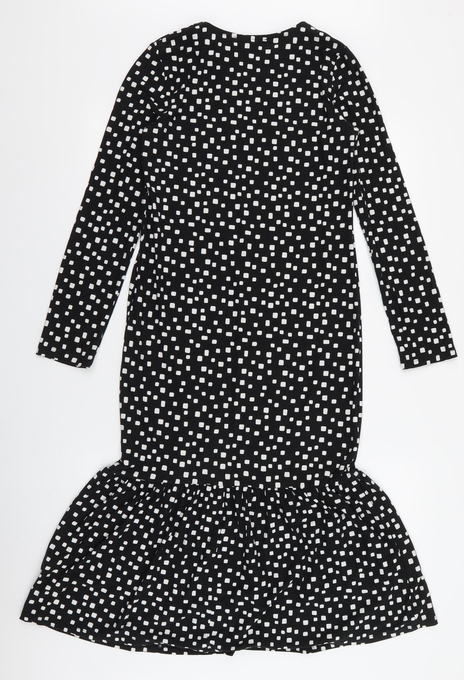 Primark Womens Black Polka Dot Polyester Mermaid Size 4 Round Neck Pullover
