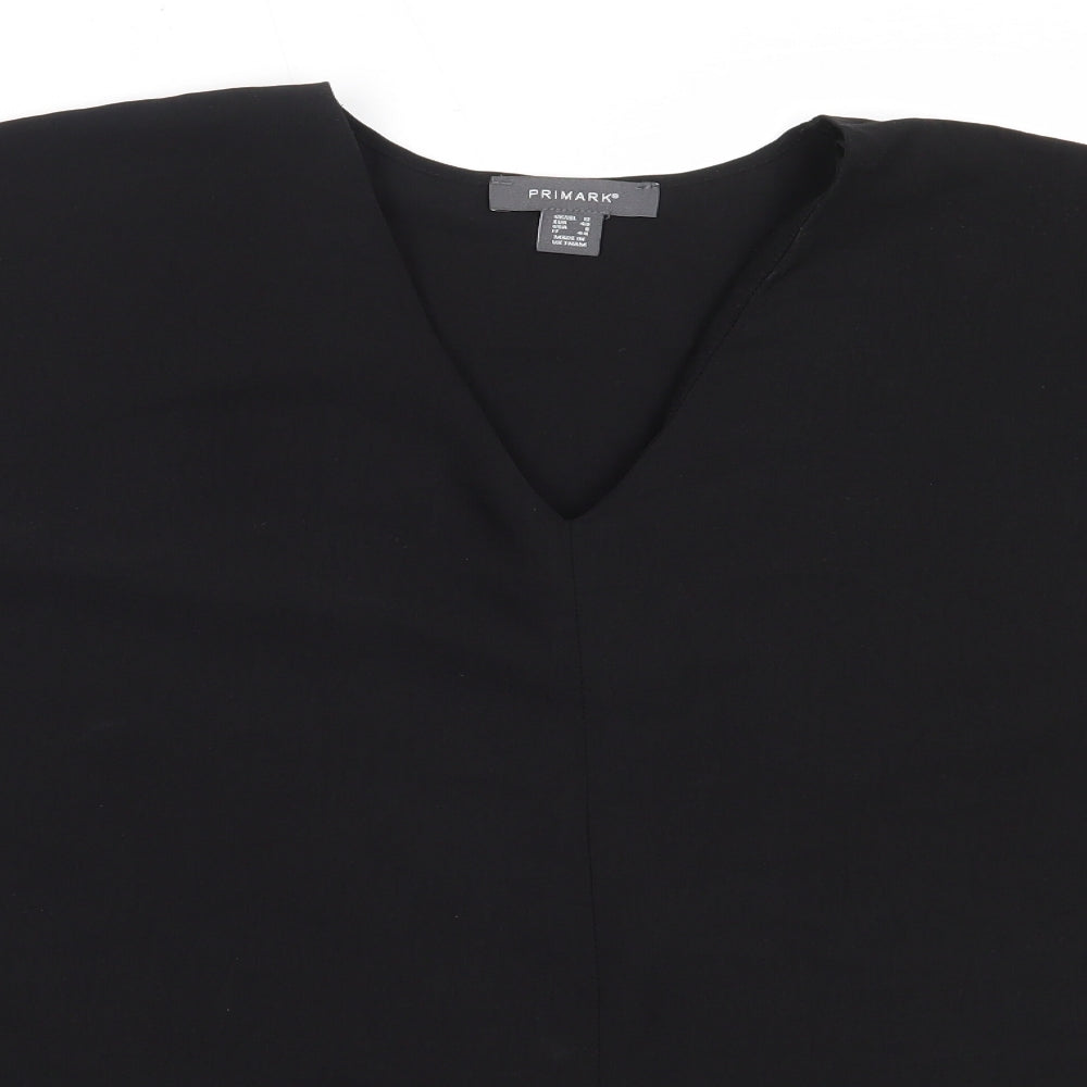 Primark Womens Black Polyester Basic Blouse Size 12 V-Neck
