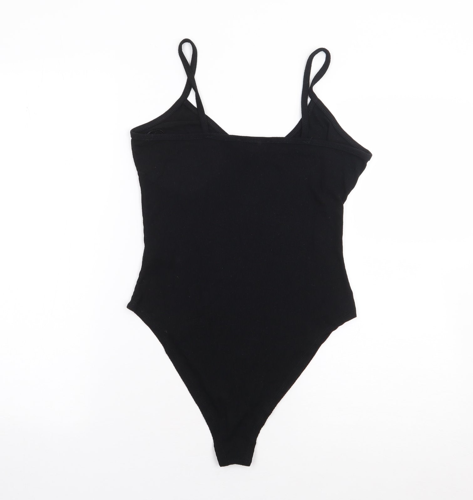 Primark Womens Black Polyester Bodysuit One-Piece Size S Snap - Ribber