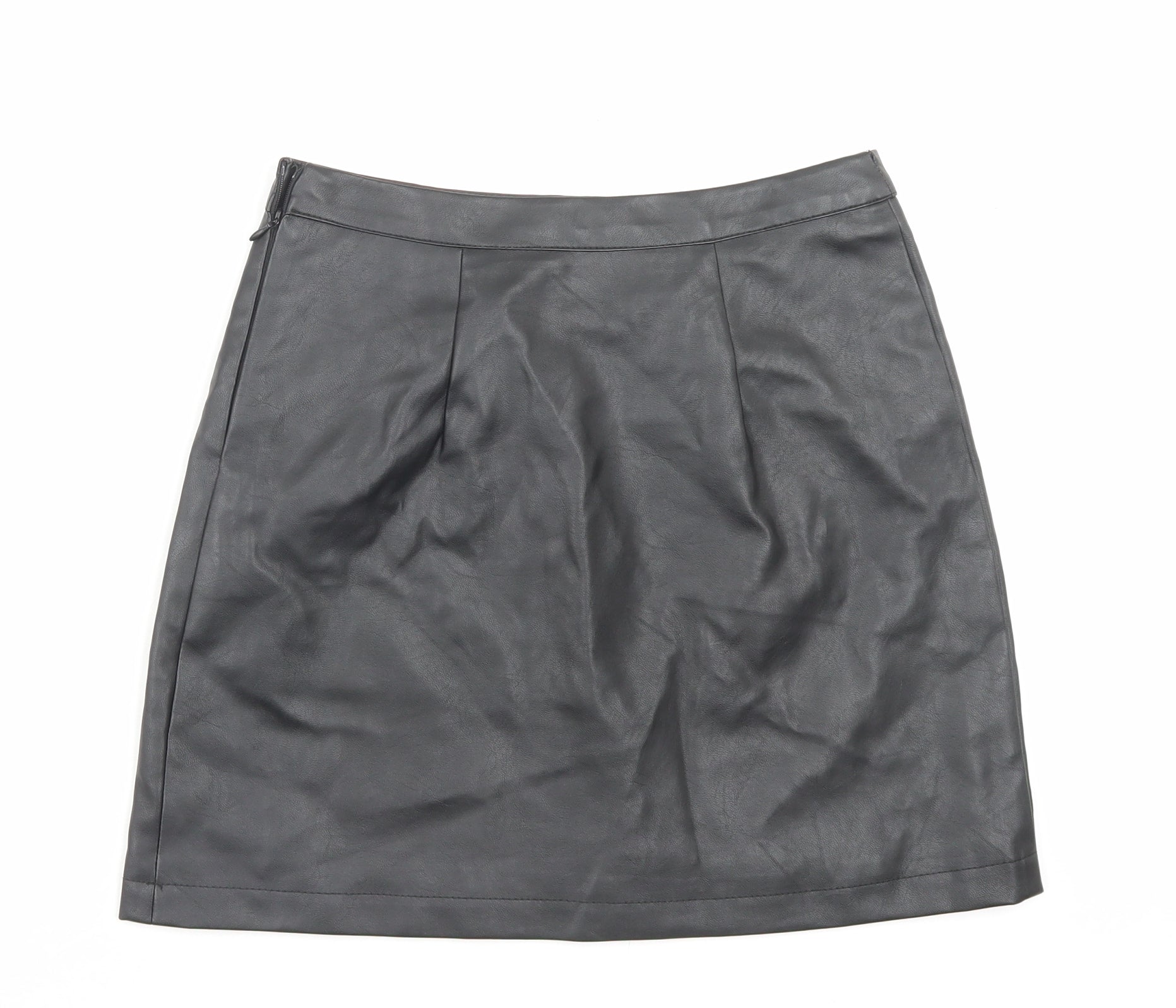Primark Womens Black Polyurethane A-Line Skirt Size 8 Zip