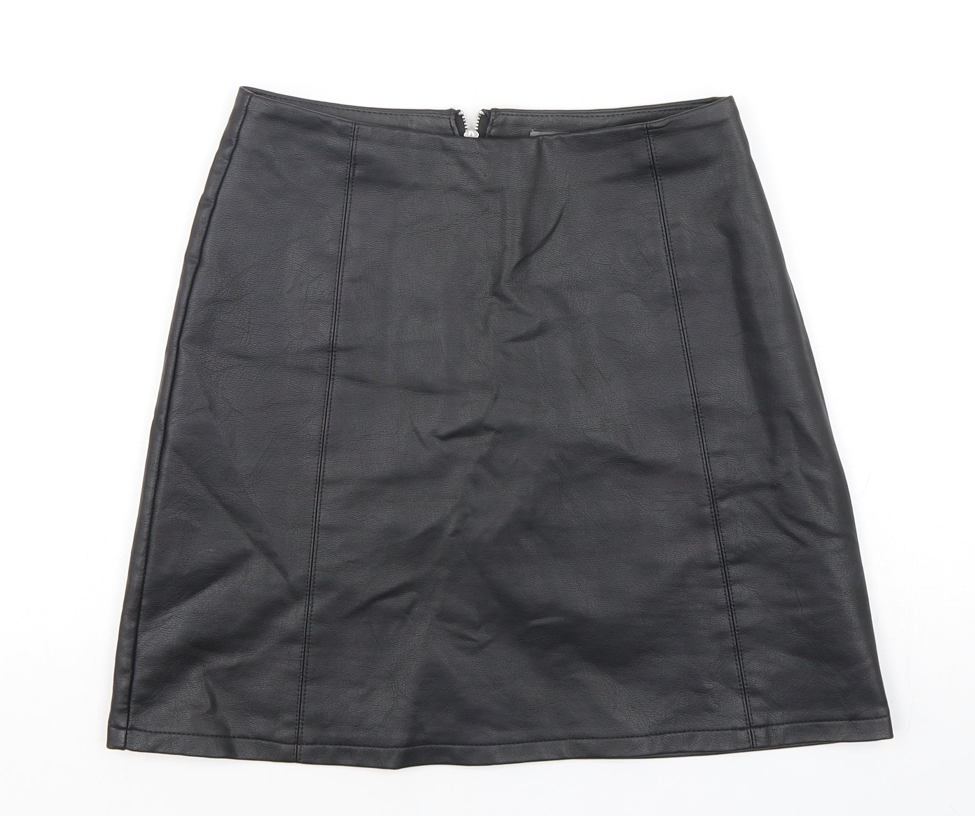 Primark Womens Black Polyurethane Mini Skirt Size 6 Zip