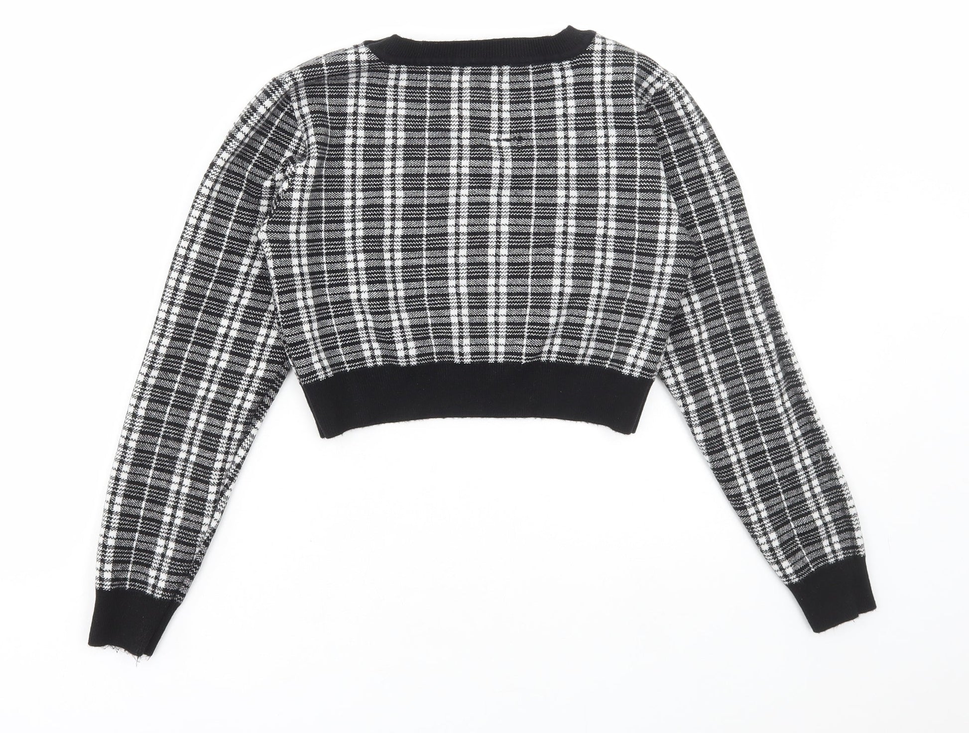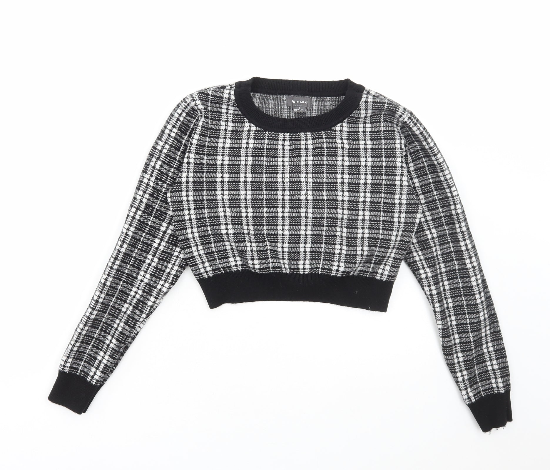 Primark Womens Black Round Neck Plaid Viscose Pullover Jumper Size S