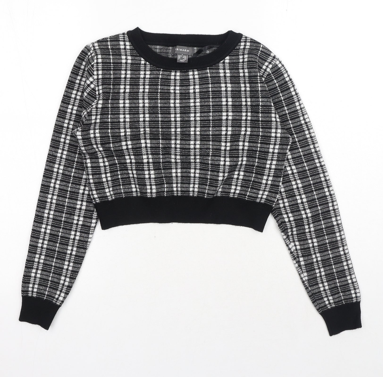 Primark Womens Black Round Neck Plaid Viscose Pullover Jumper Size S