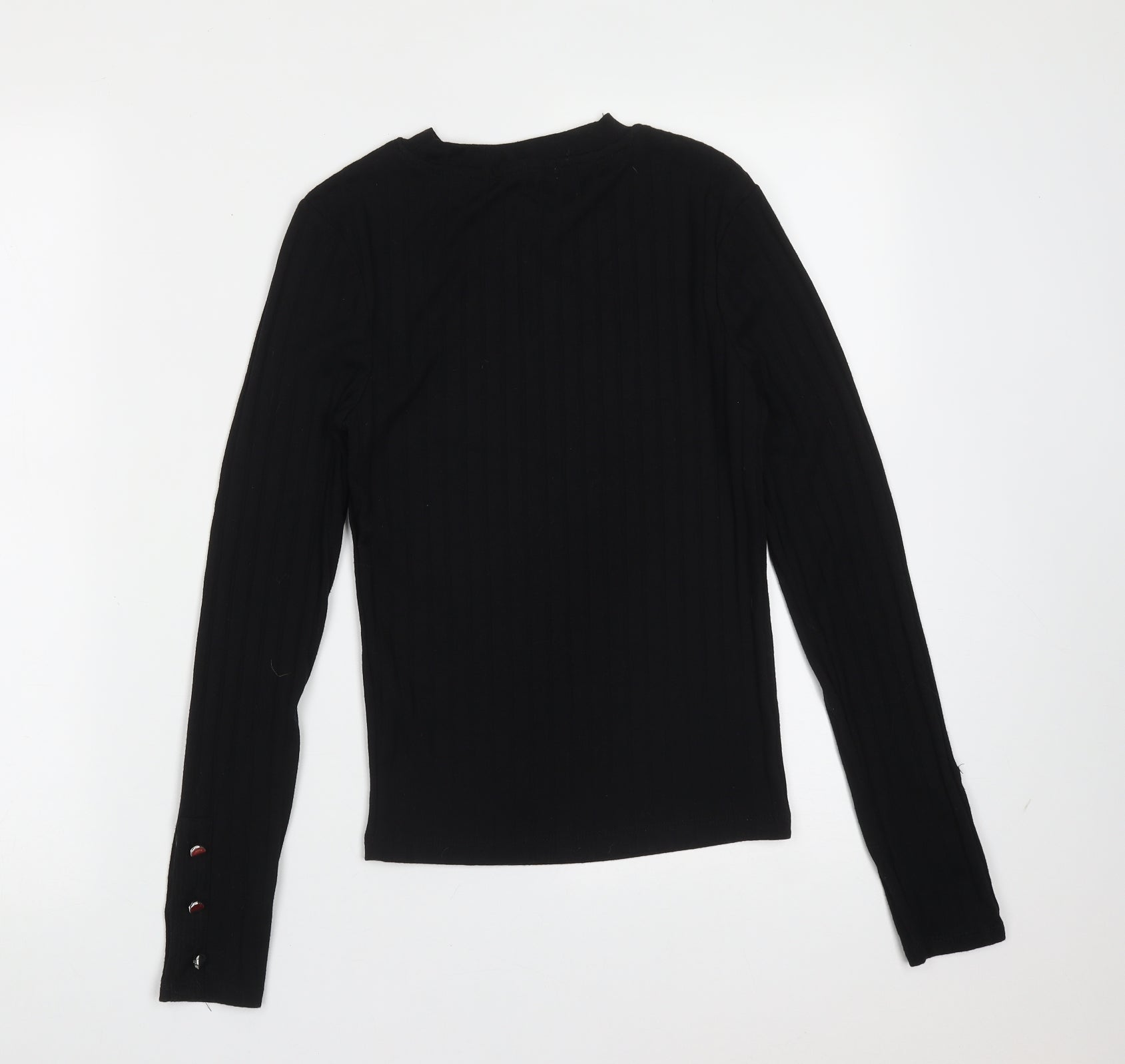 Primark Womens Black Round Neck Striped Polyester Pullover Jumper Size XS
