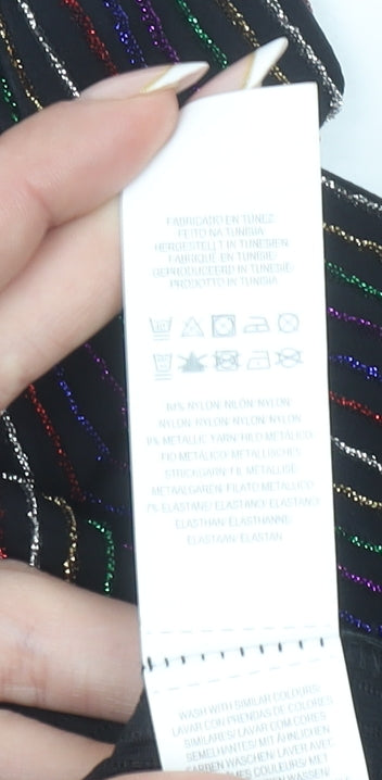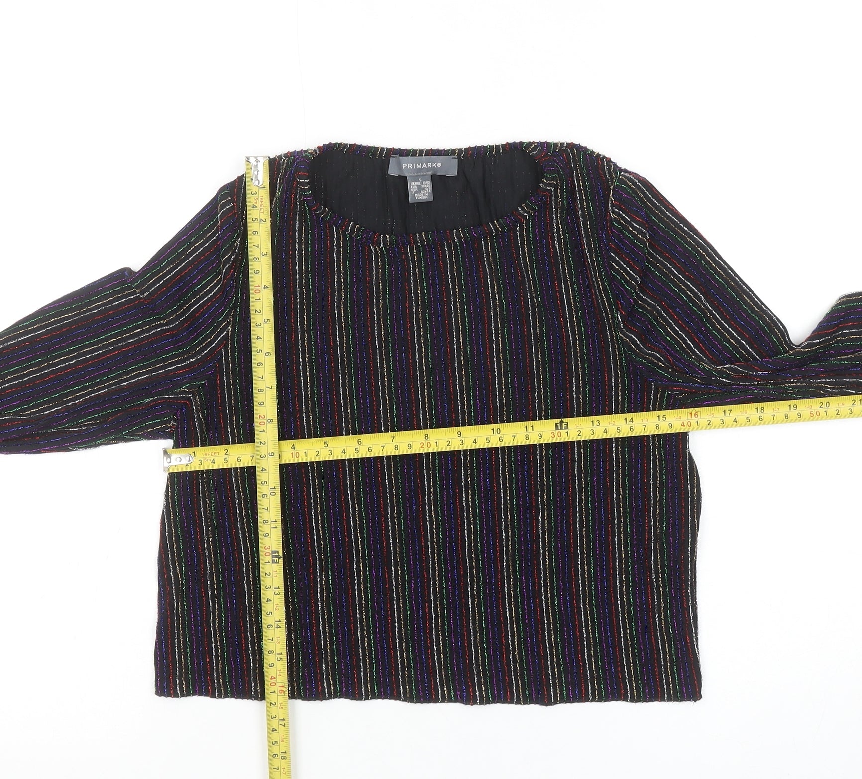 Primark Womens Black Striped Glitter Cropped Long Sleeve Top Size S 10/12