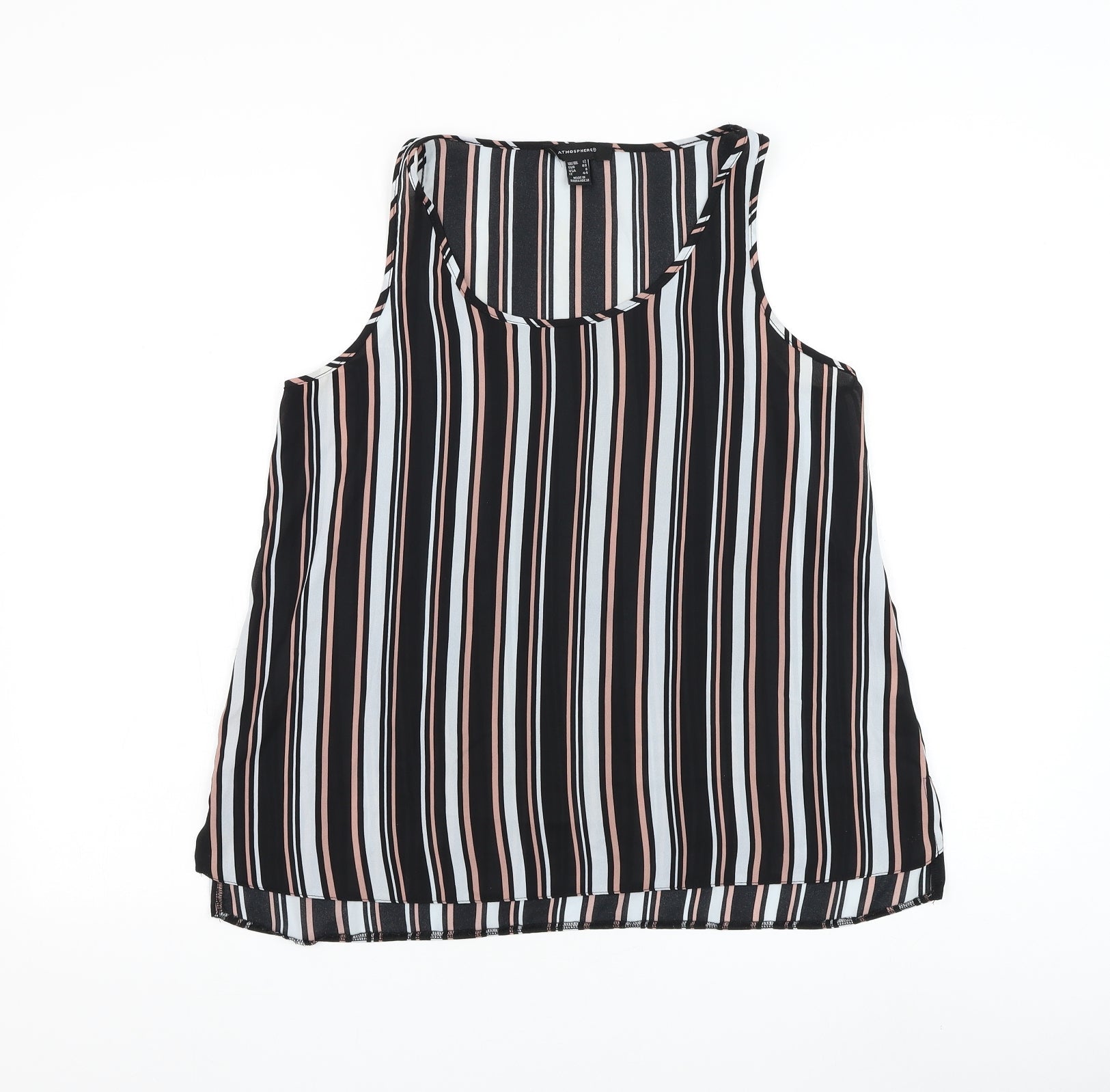 Primark Womens Black Striped Polyester Basic Tank Size 12 Round Neck