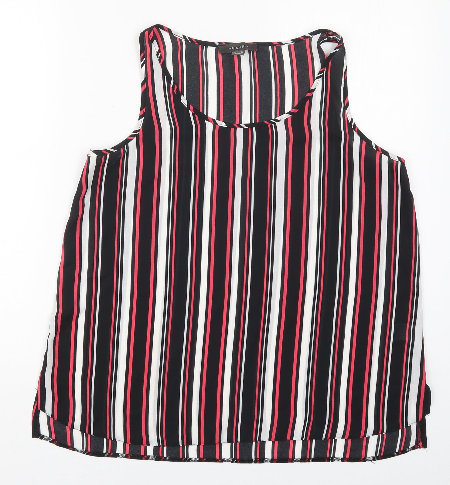 Primark Womens Black Striped Polyester Basic Tank Size 14 Round Neck - Pink