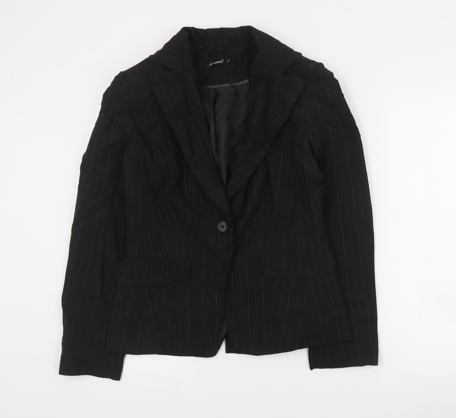 Primark Womens Black Striped Polyester Jacket Suit Jacket Size 10