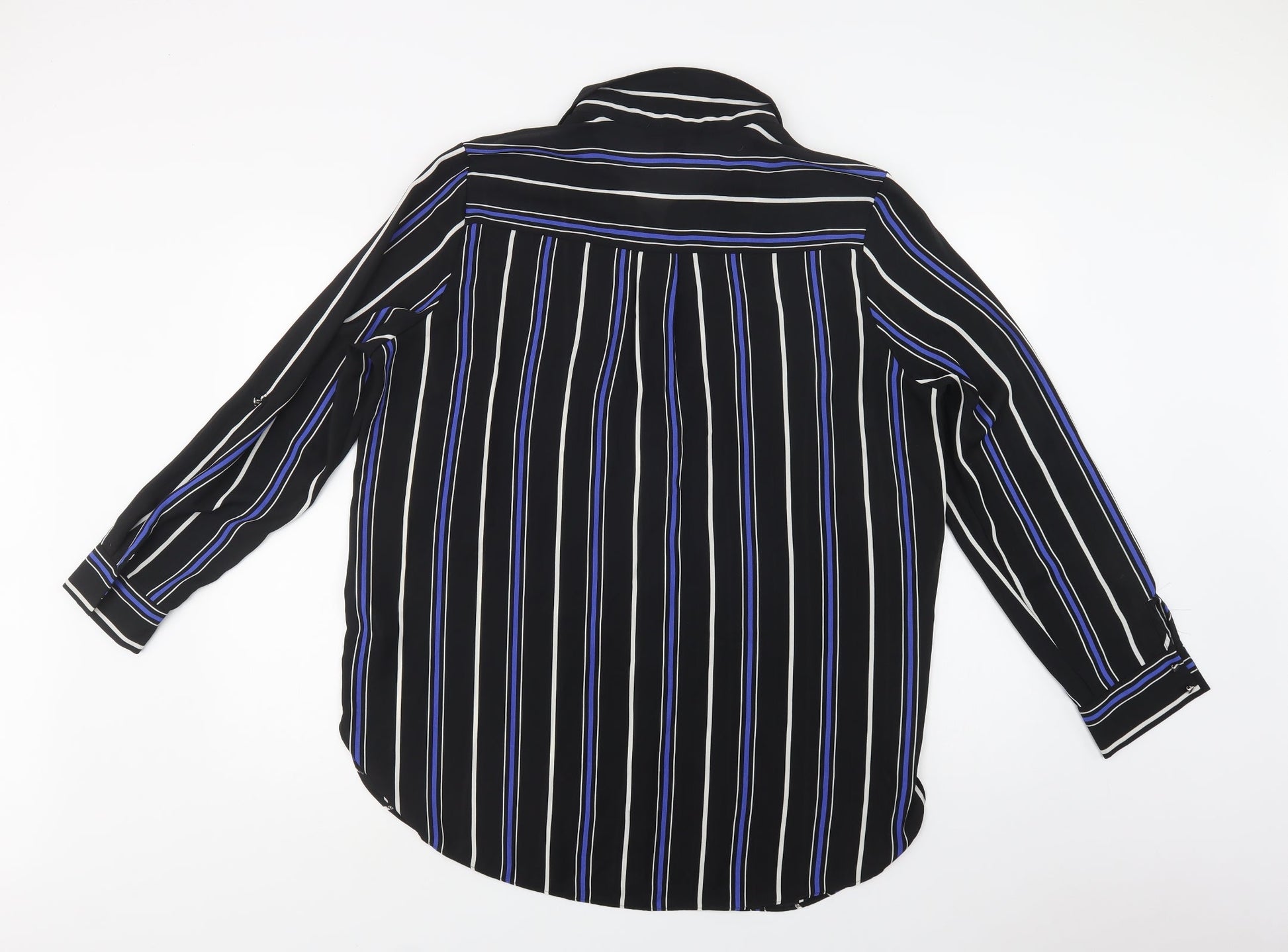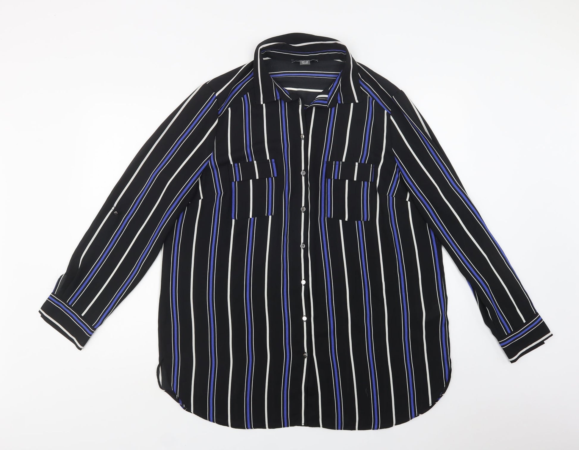 Primark Womens Black Striped Polyester Tunic Button-Up Size 18 Collared