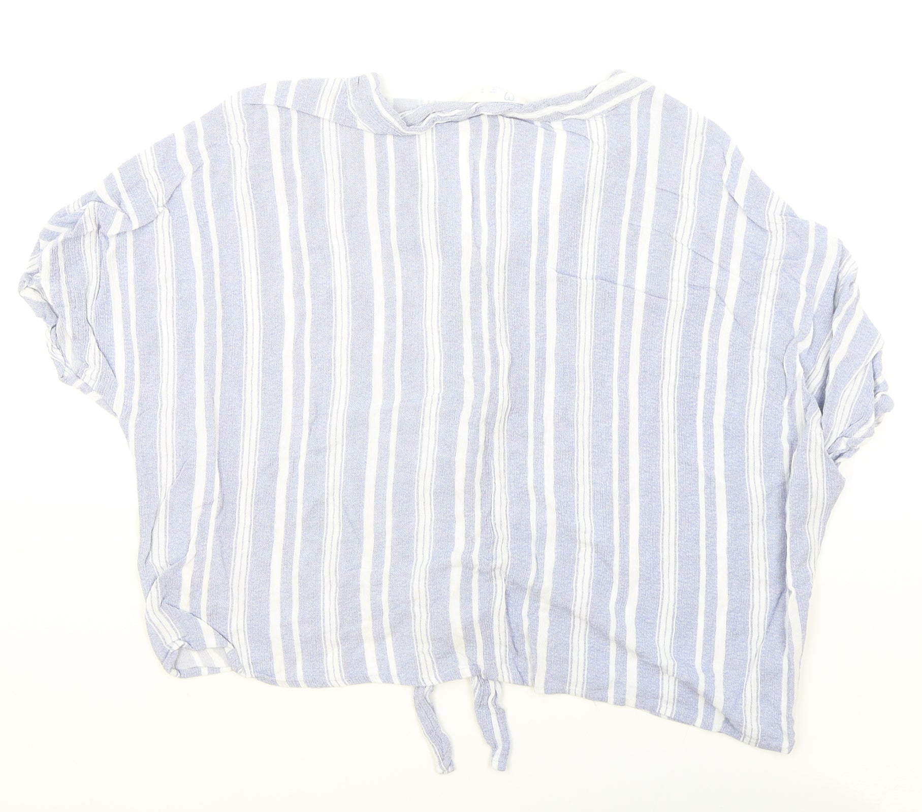 Primark Womens Black Striped Viscose Basic Button-Up Size 14 V-Neck
