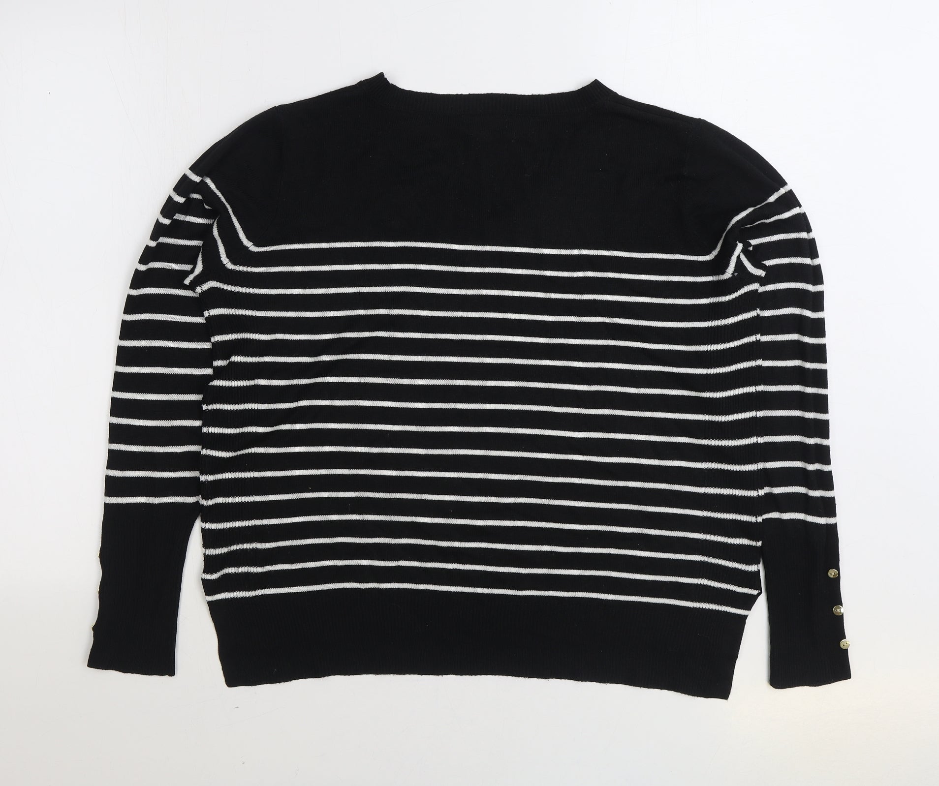 Primark Womens Black V-Neck Striped Acrylic Pullover Jumper Size S