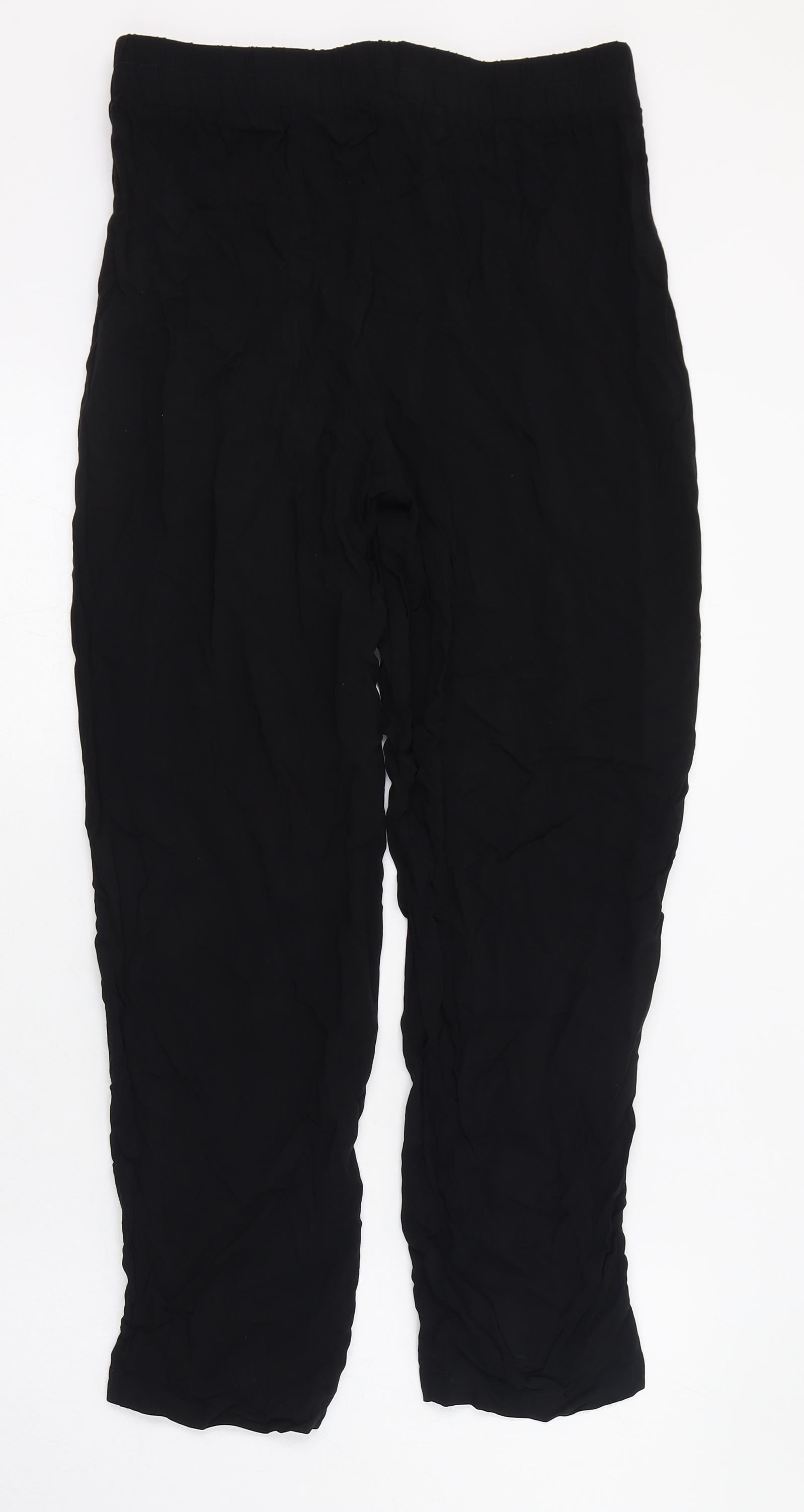 Primark Womens Black Viscose Capri Trousers Size 10 L26 in Regular Tie