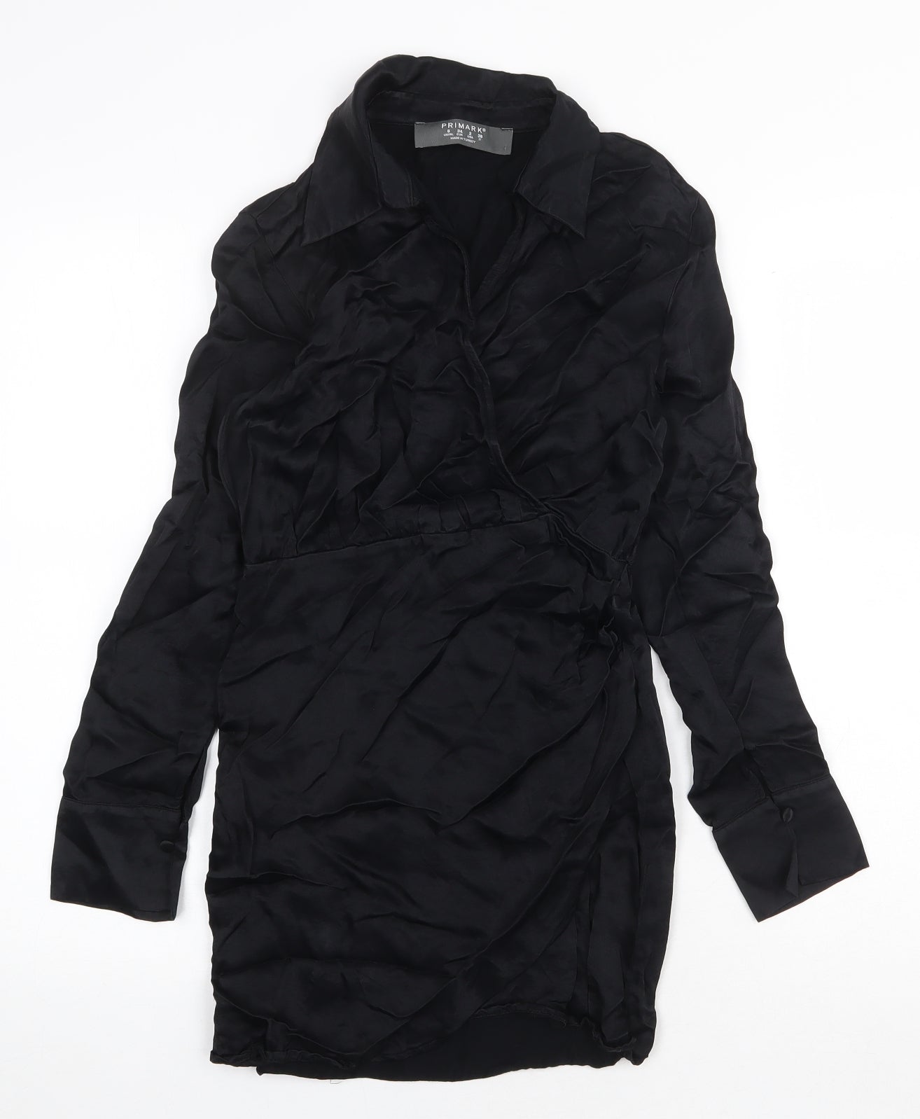 Primark Womens Black Viscose Shirt Dress Size 6 Collared Pullover