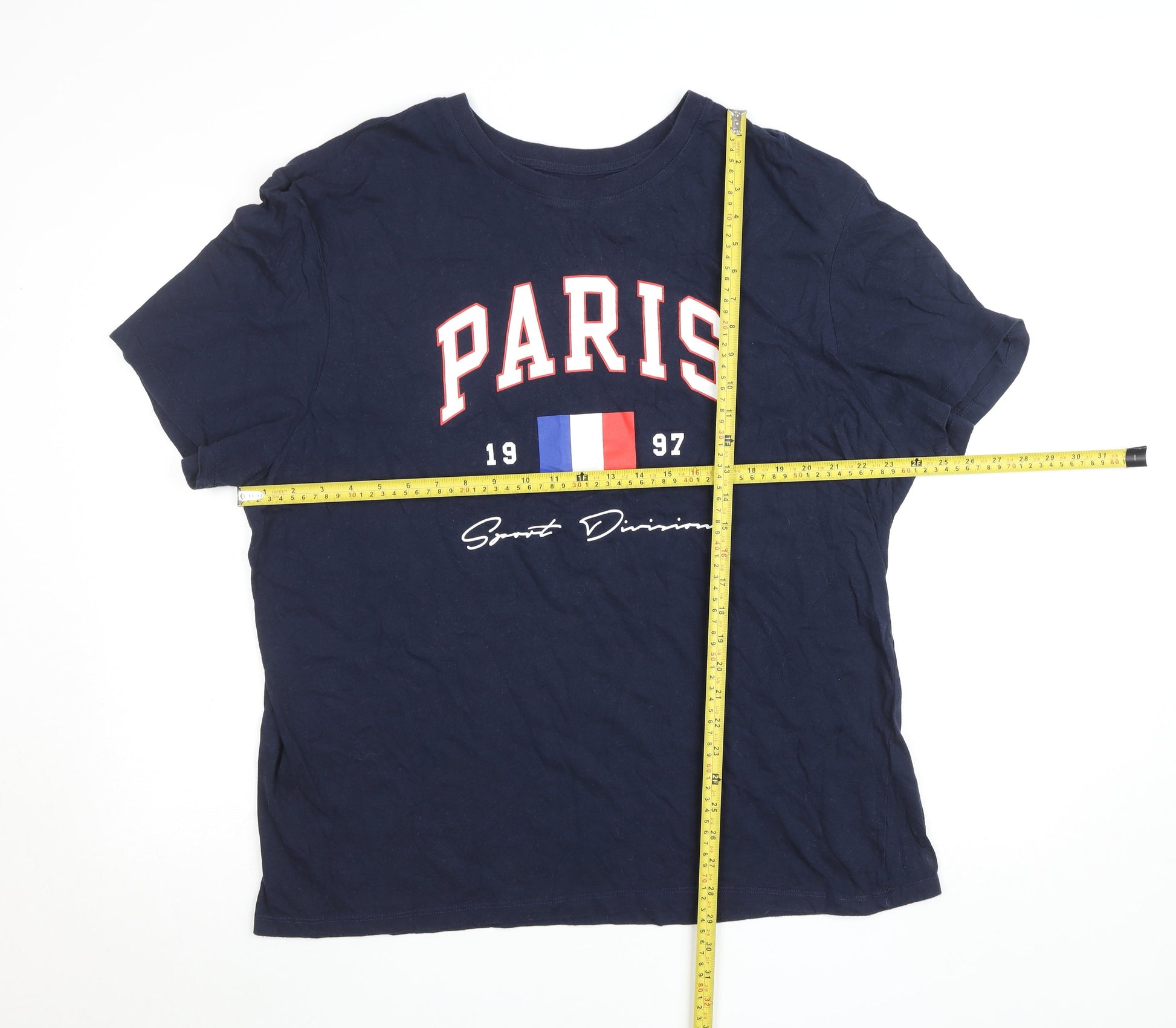 Primark Womens Blue 3XL Basic Paris Print Cotton T-Shirt