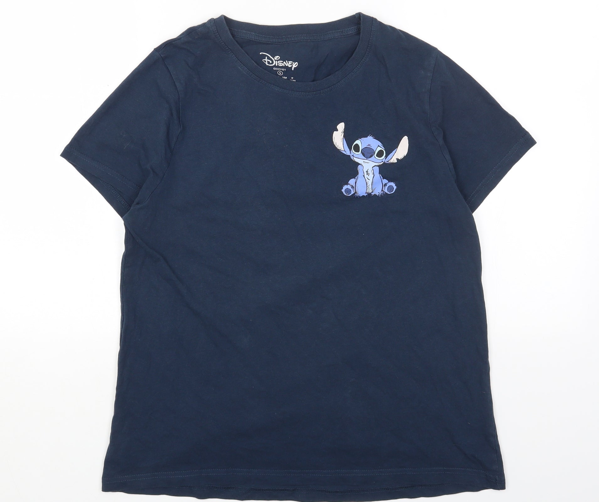 Primark Womens Blue Cotton Basic T-Shirt Size S Round Neck - Stitch Print