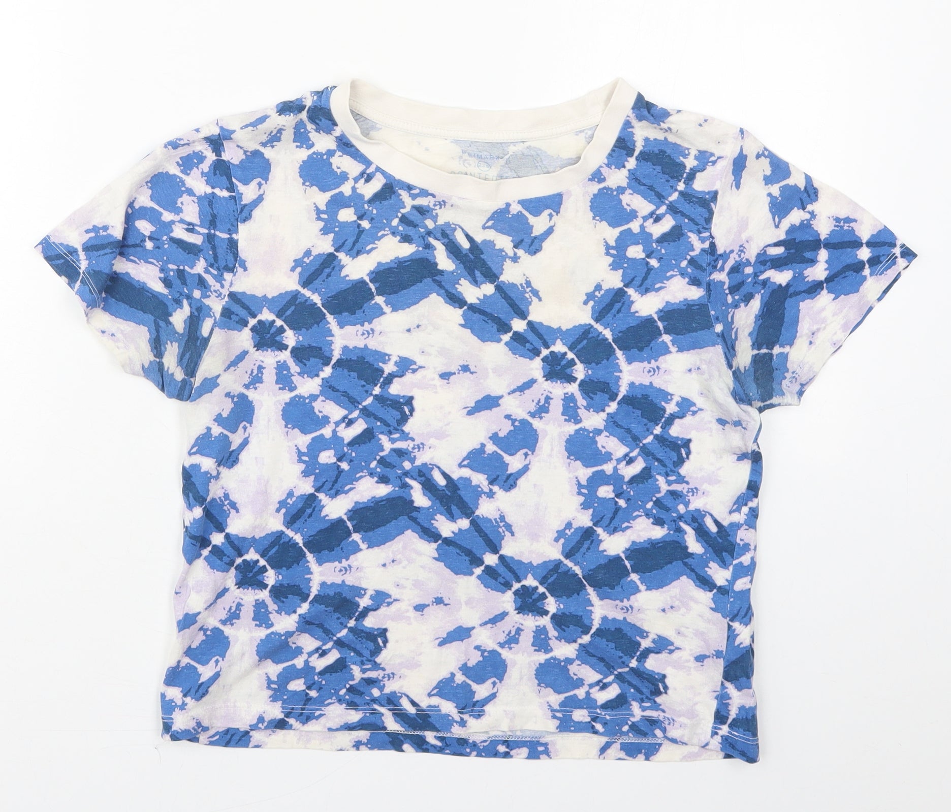 Primark Womens Blue Cotton Cropped T-Shirt Size 4 Crew Neck - Tie Dye