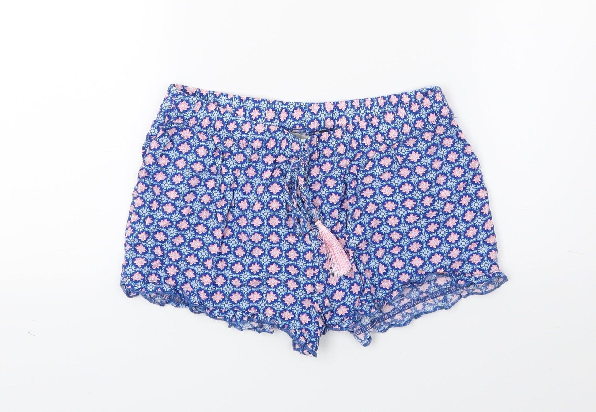 Primark Womens Blue Floral Hot Pants Shorts Size 4 - Lounge Wear