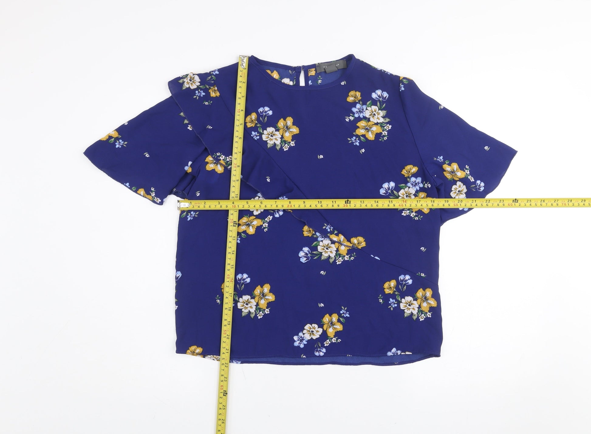Primark Women's Blue Floral Ruffle Short Sleeve Tunic Blouse Size 10