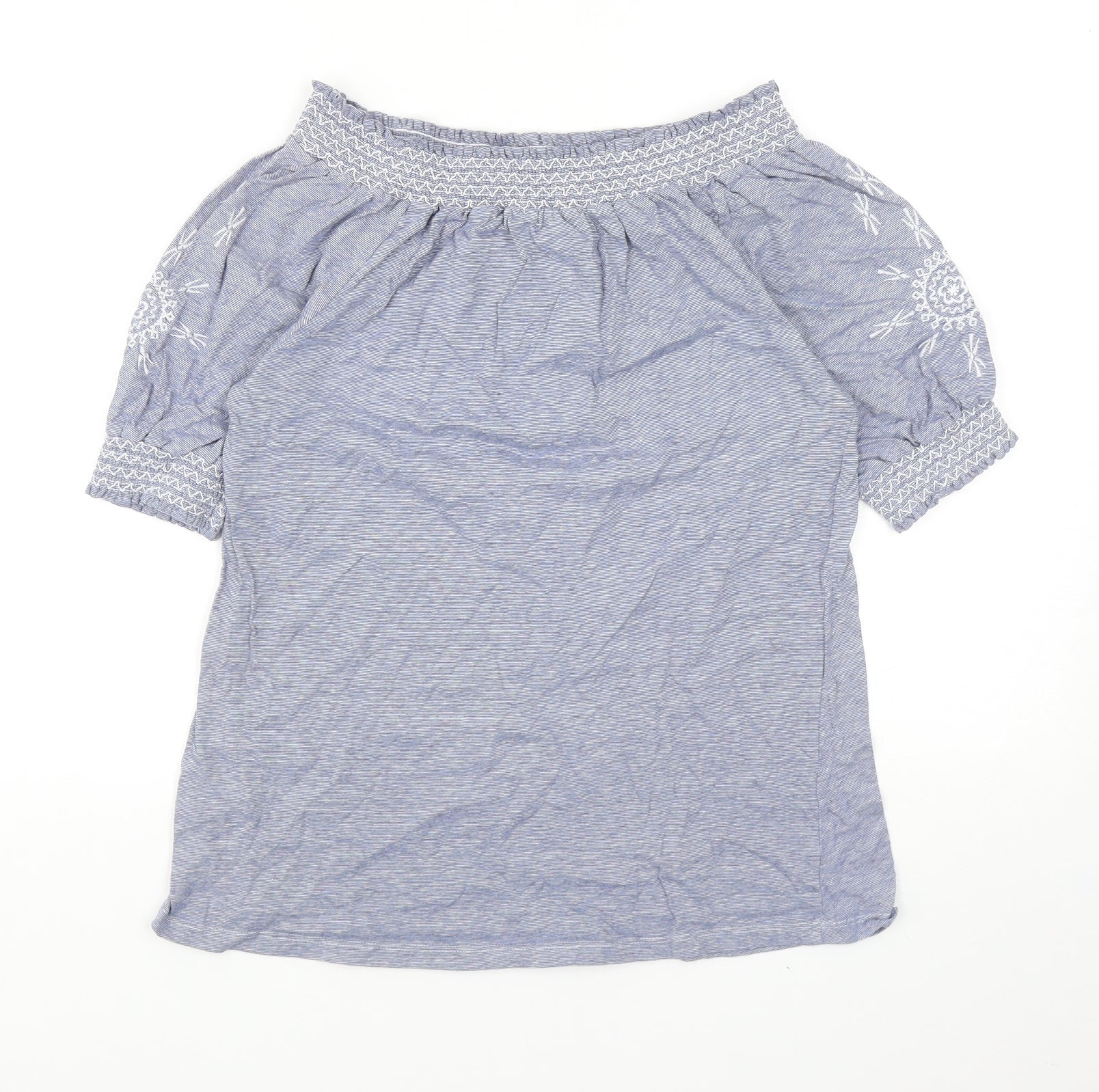 Primark Womens Blue Geometric Cotton Basic Blouse Size 10 Off the Shoulder
