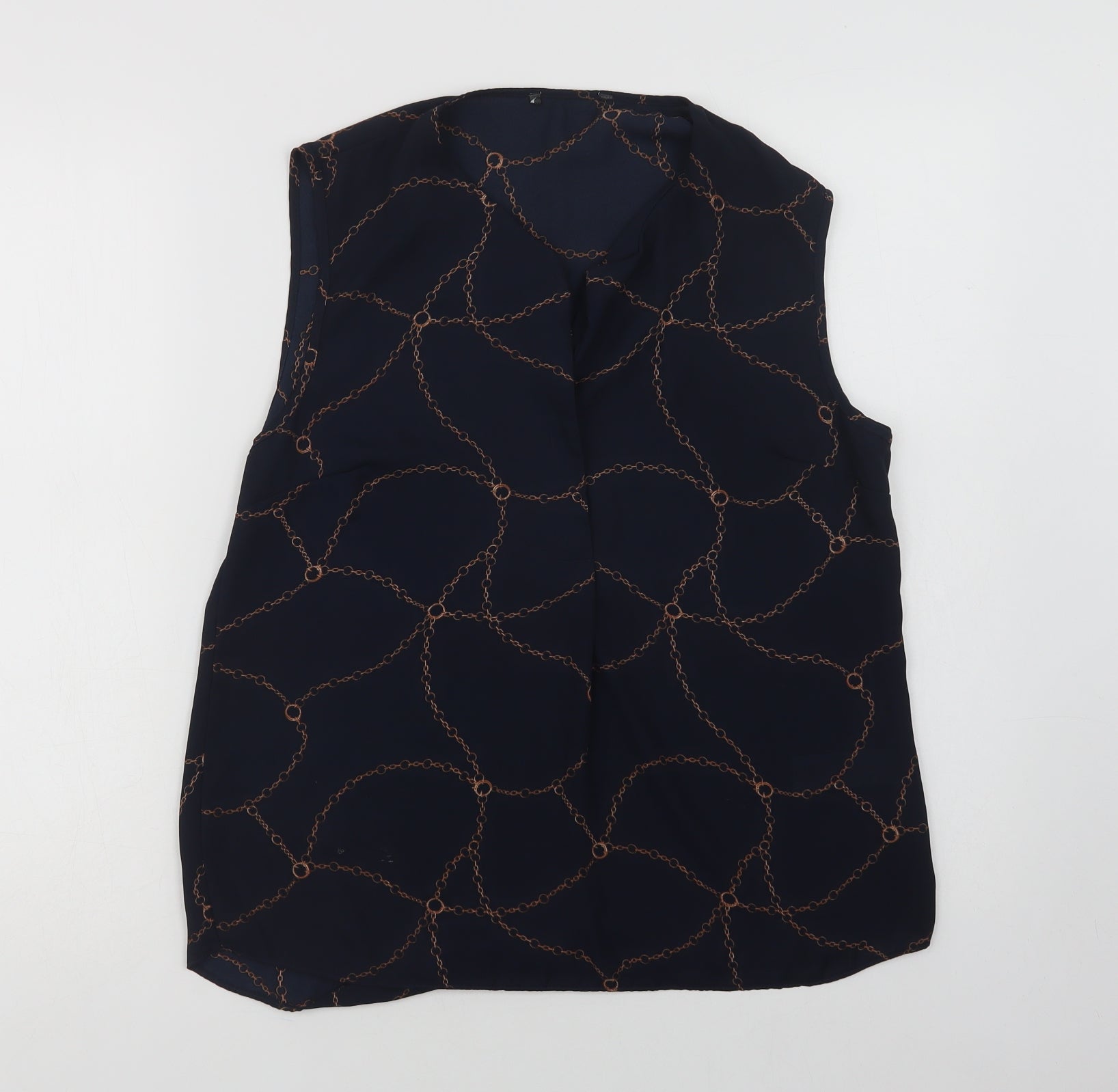 Primark Womens Blue Geometric Polyester Basic Blouse Size 14 V-Neck