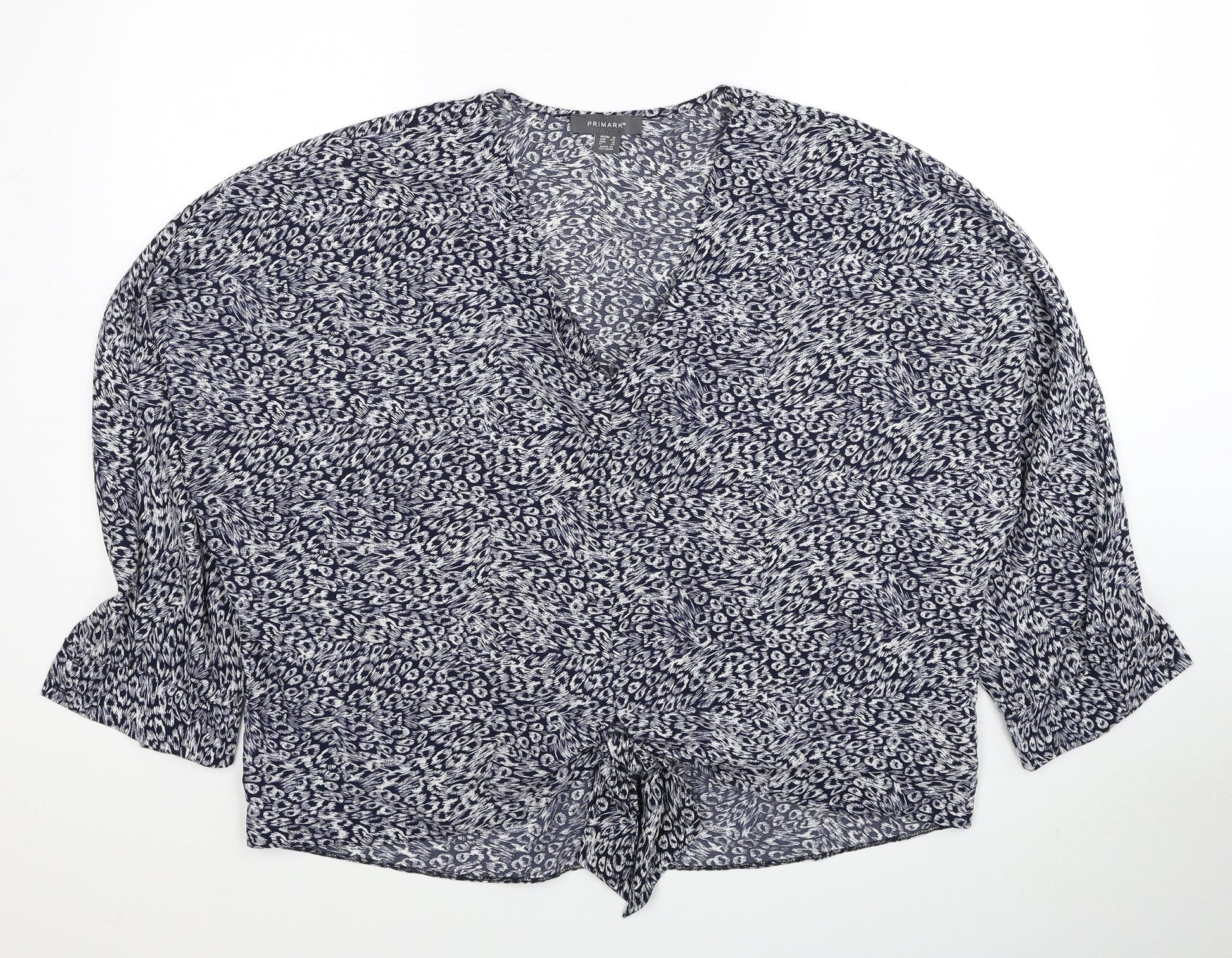 Primark Womens Blue Geometric Polyester Basic Blouse Size 16 V-Neck - Knot Front