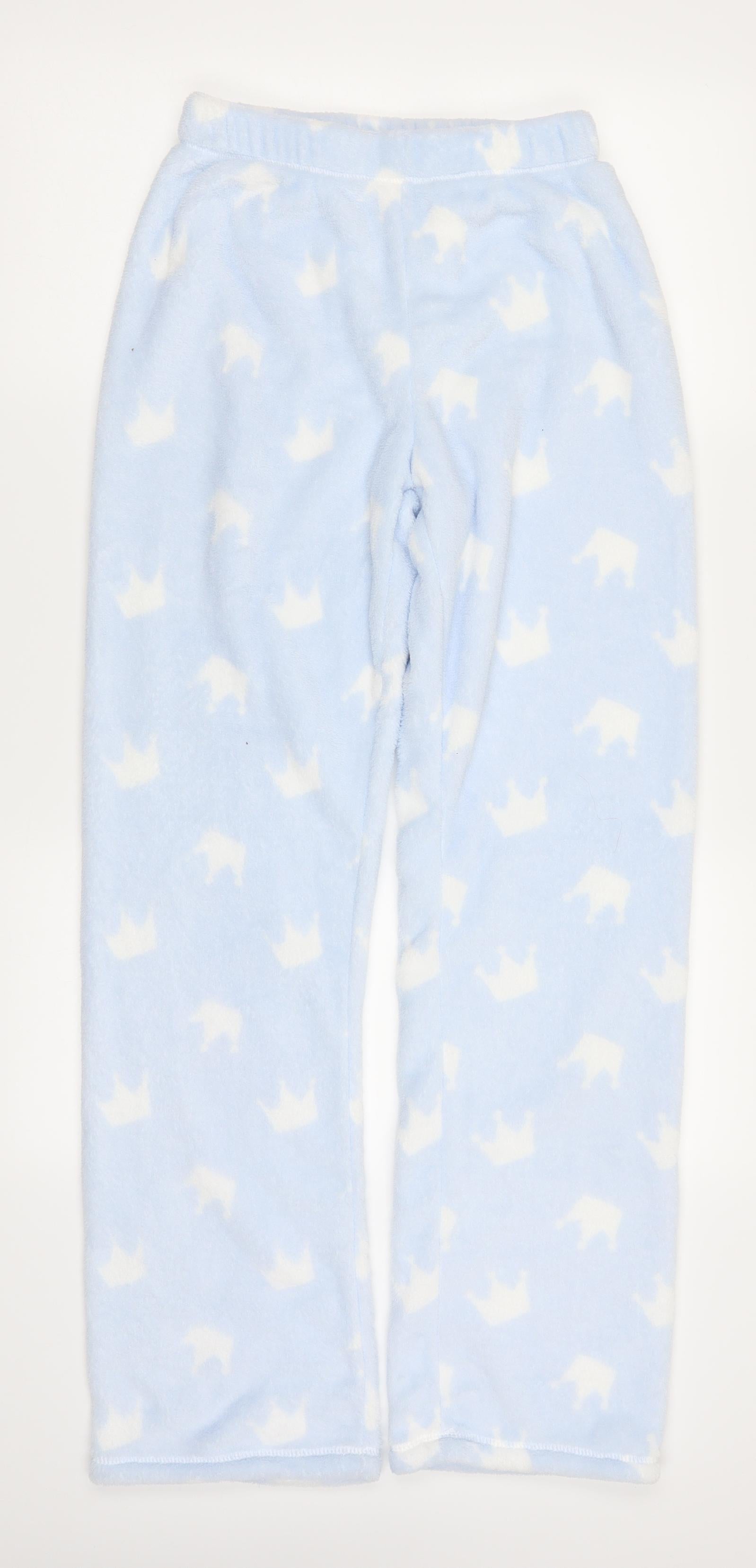 Primark Womens Blue Geometric Trousers Size 6 L29 in - Crown Print Loungwear