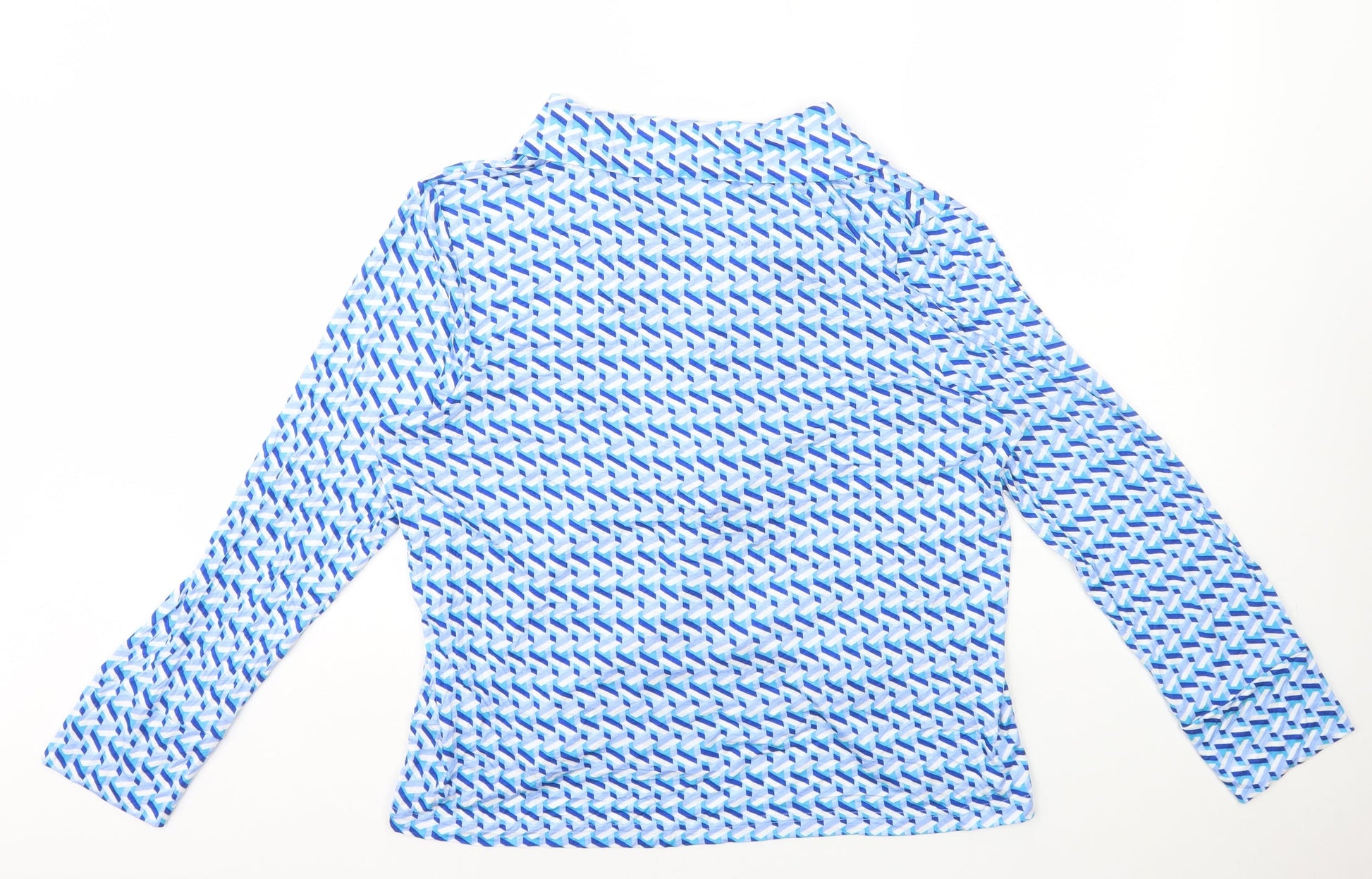 Primark Womens Blue Geometric Viscose Basic Button-Up Size M V-Neck