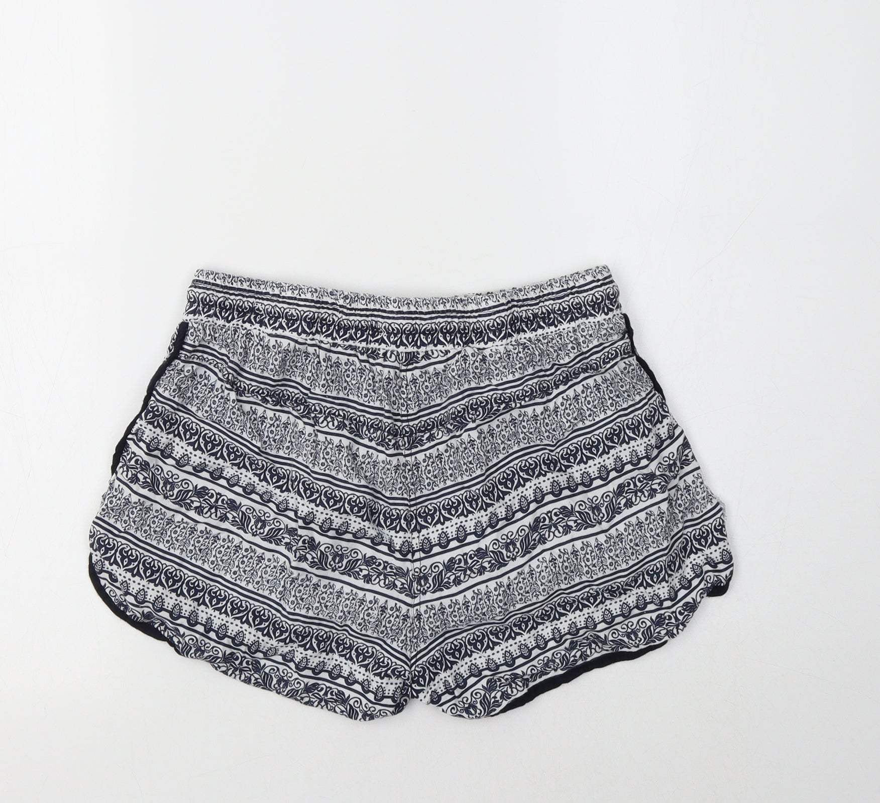 Primark Womens Blue Geometric Viscose Bermuda Shorts Size 8 L3 in Regular