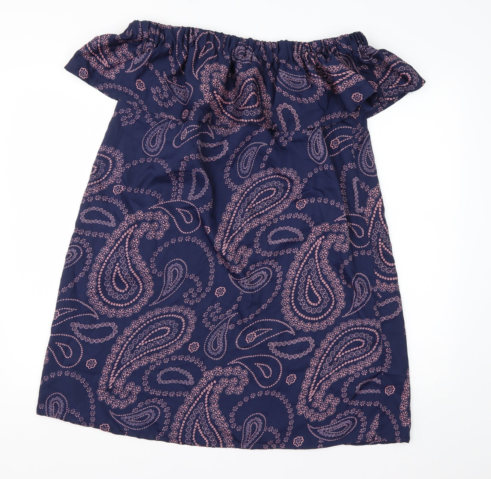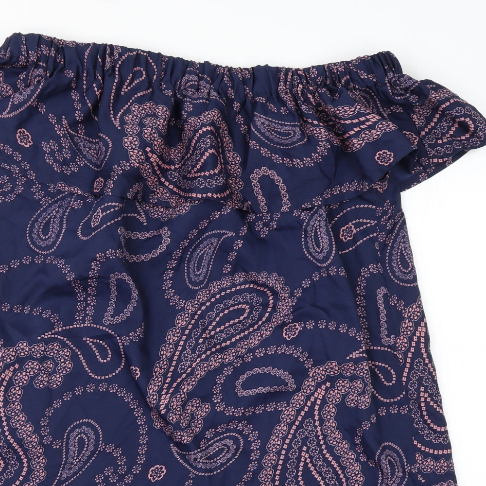 Primark Womens Blue Paisley Polyester A-Line Size 12 Off the Shoulder Pullover